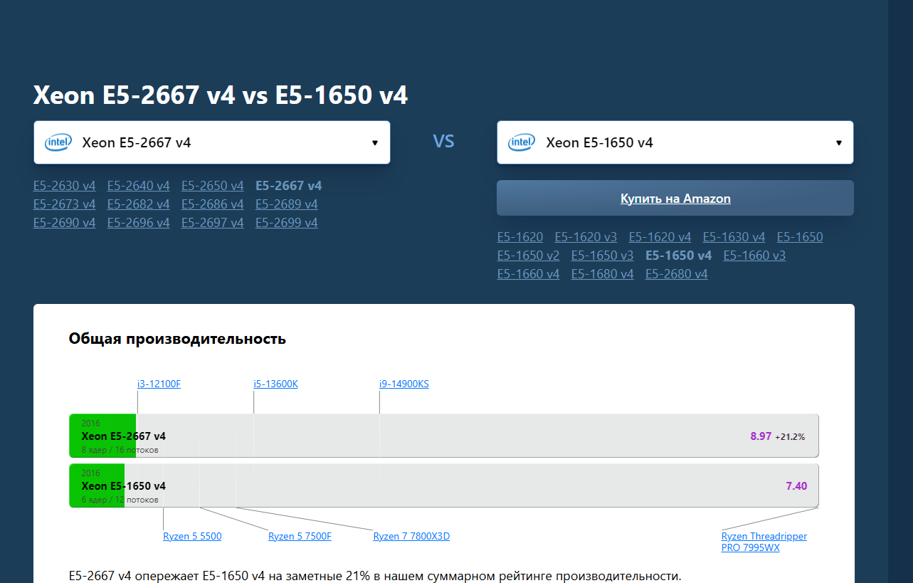 Ну что за бред! Я бы понял, если бы ты сравнивал зионы с топовыми процессорами от интел 13-14 поколения или топовыми "рузеными"! Все зионы плюс-минус одинаковы! Нет там глобальной разницы! А разница в несколько процентов роли не играет!
