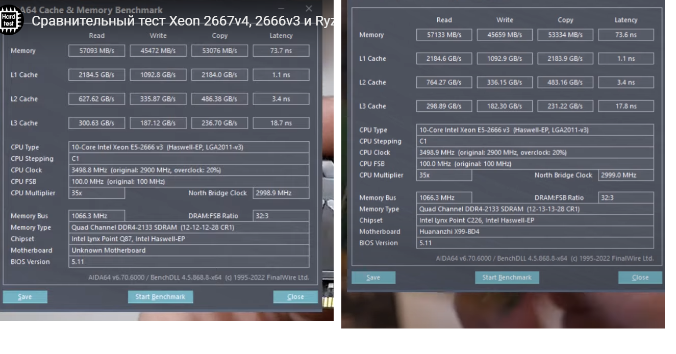 Ну смотри внимательнее, может где-то настройки отличаются не? ты 2 видео смешал в одно? Теоретически и такое может быть, паритет или даже незначительное превосходство в каких либо задачах особенно чувствительных к памяти, у 5500 он лучше. Ага.