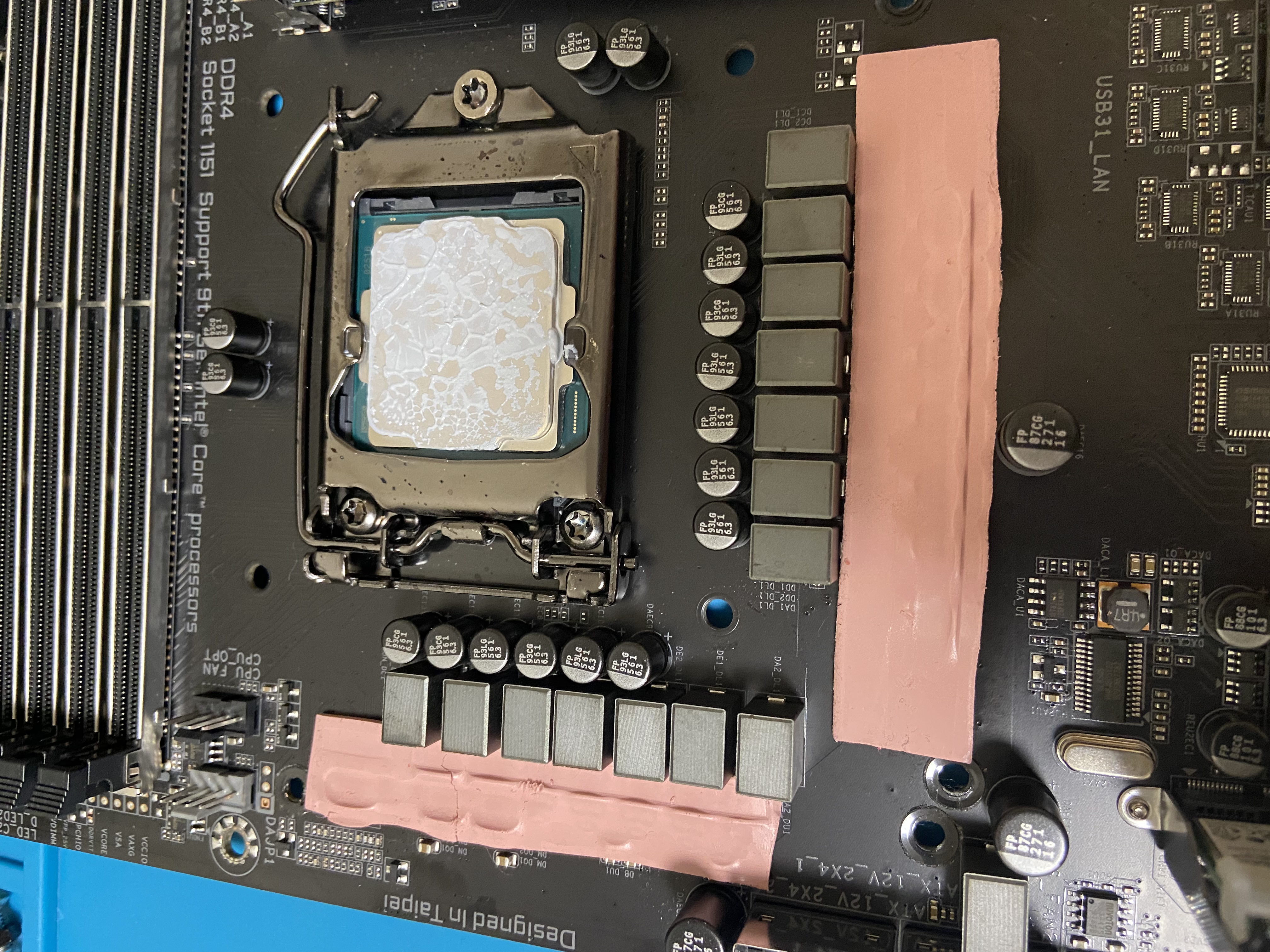 Поддержка сказала, что стоят прокладки laird 5w/k, в интернете посмотрел информацию, что у этой фирмы розовые, темносерые (которые стоят позади платы и на чипсете) теплопроводность от 2 до 3,8. Кто подскажет какие нужны по толщине, у меня уже синий экран из за перегрева вылетает?