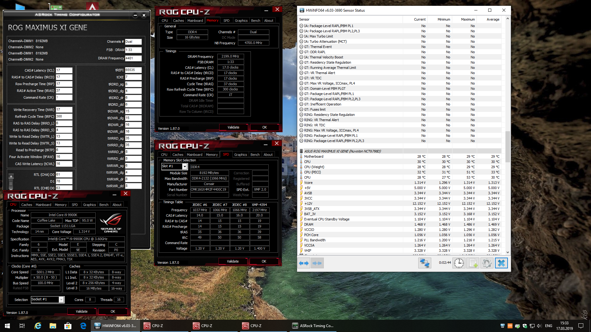 Думаю это предел на Gene XI в плане частот памяти на 1T (хотя кто его знает - 4533 1T тайминги я уже подобрал, осталось подобрать нужные напряги ), кое какими таймингами пришлось пожертвовать иначе после 100% в Memory Test появлялись ошибка, но сейчас всё тип топ