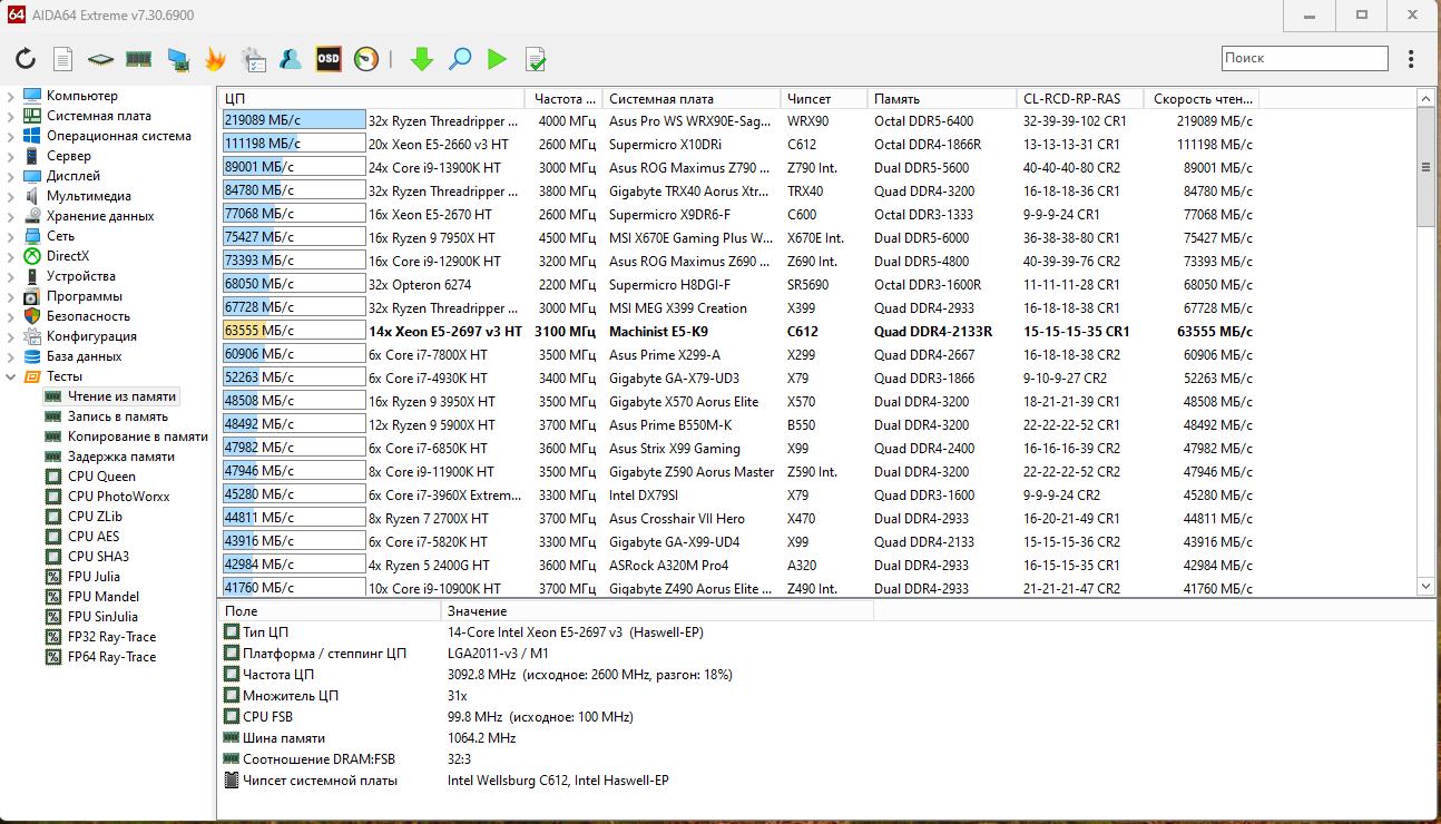 то то я собрал комп на Xeon E5 2697 V3 памяти 64 гига DDR4 Samsung мать Machinist X99-K9 (Machinist E5-K9 ver1)