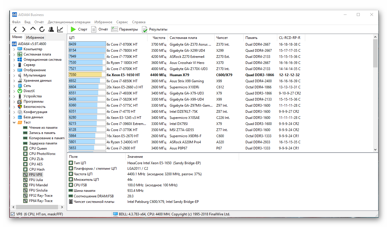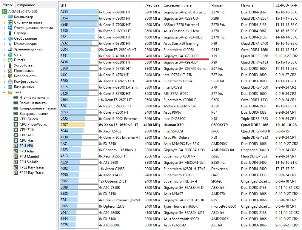 И вот что еще не дает мне покоя. Во всех тестах кроме одного в AIDA64, E5 1650v2 с разгоном до 4,1 дает попугаев чуток больше чем 4930k(там он в стоке) но вот в тесте FPU VP8 жесткий слив.У всех так? и почему?