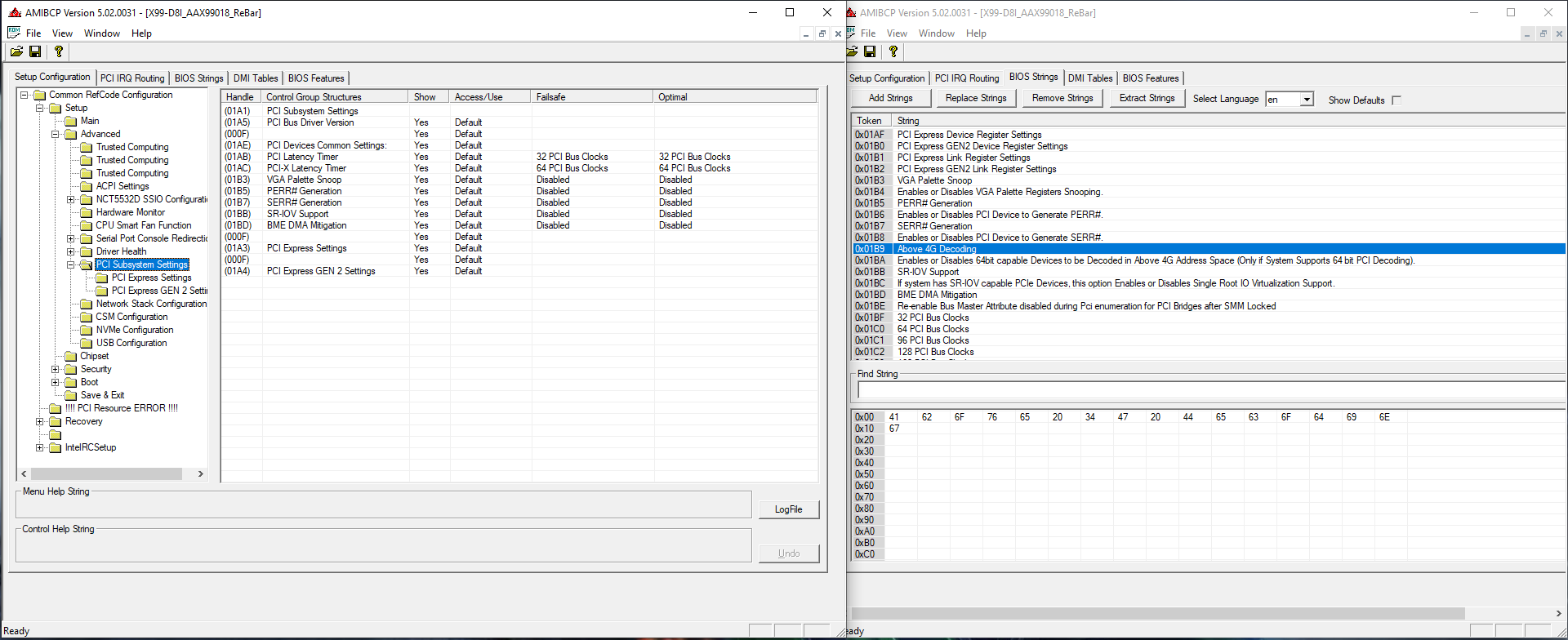 Всех приветствую. Может кто нибудь сделать видимой строку Above 4G Decoding в настройках биос. Драйвер ReBar добавил, но раздел Above 4G Decoding не отображается. Биос от Panshi X99-D4 PLUS, почти копия моей. В архиве оригинал и мод.