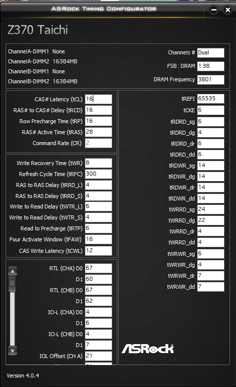 Друзья, дайте, пожалуйста, совет по вопросу разгона оперативки. Ситуация в следующем. У меня было 16 Гб оперативки 2 по 8Гб G.Skill 3200-CL14, стабильно работавшей на 4100 Мгц с таймингами 18-18-28-cr2. Решил сделать апгрейд, и добавил ещё 2 таких же модуля G.Skill 3200-CL14 по 8Гб каждый, и тут всё завертелось: максимальный разгон, который теперь удаётся выжать на 4 модулях – это 3800Мгц, выше не идёт. Поднятие напряжений DRAM Voltage, VCCIO, VCCSA ничего не даёт – система продолжает сыпать ошибками в TestMem. Предполагаю, что есть ещё какие-то настройки в БИОСе, которые помогут раскочегарить контроллер памяти, подскажите, что ещё можно накрутить на Таичи, чтобы раскочегарить контроллер памяти на разгон 4 модулей? Или у меня только один путь: скидывать 4 х 8Гб на Авито и брать 2 по 16Гб, чтобы достичь на них прошлых стабильных 4000 – 4100Мгц?