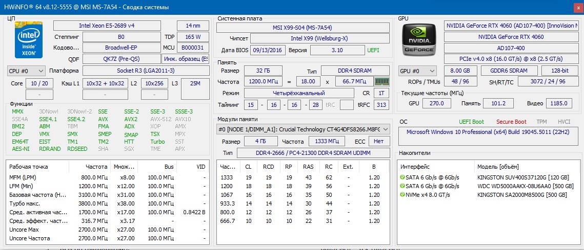 2.VEugene Продаю комплект вот такой: https://aliexpress.ru/item/100500314818 ... 1667062299 Только камни 2666 v3 Состав: HUANANZHI X99-F8D LGA2011-3 Xeon E5 2666 v3 - 2 шт. Кулера для CPU - 2 шт. 8G DDR4 2133 REG ECC память - 2 шт. 128G M.2 NVMe SSD (китайский) - 1 шт. Комплект был запасной, куплен целиком мной лично, заменены в нем только камни (изначально были 2690 v3) Все проверено, запускается. Цена 22000 руб. В Москве.