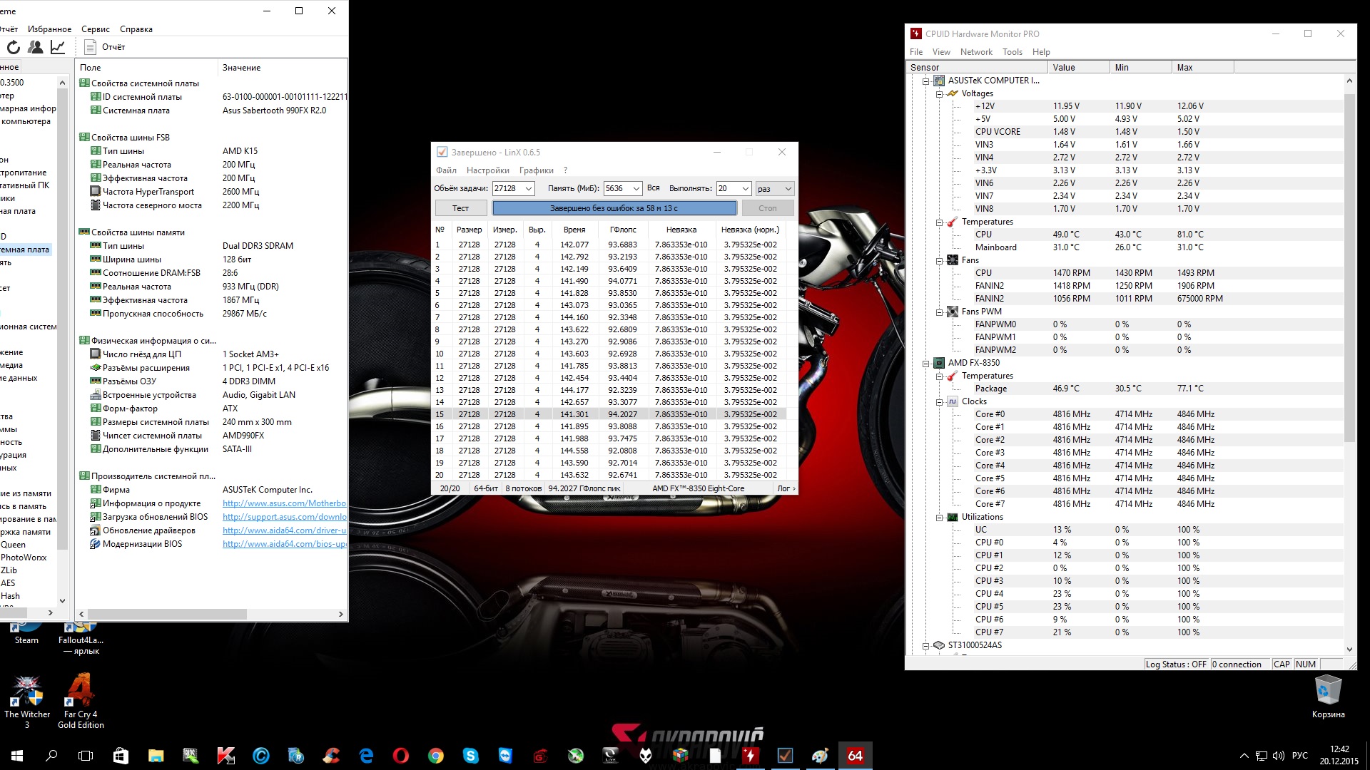dennix 1) Проц перегреваешь по обоим датчикам! 2) На честных 4800 должно быть не ниже 96Гфлопсов. Но пока не организуешь достойный охлад проца и силовой части, даже не думай дальше мучать.