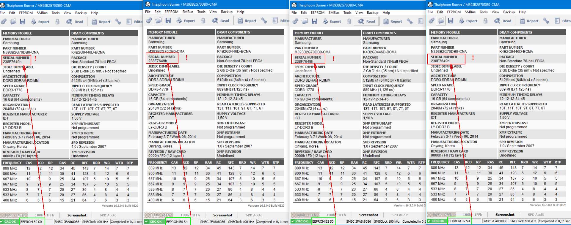 jda Китайцы с оперативной памятью кидают. Берут старую с низкой частотой, разгоняют её и прошивают. А в споре торговая площадка занимает сторону продавца. Ничего ты не докажешь. Просто в деньгах потеряешь и всё. Вот доказательства. Они даже не парятся. Прошивают одним файлом сотни тысяч модулей и потом распродают. Мошенничество в промышленных масштабах.