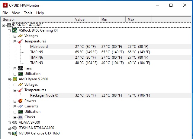 Всем привет! Есть Материнская плата ASRock Fatal1ty B450 Gaming K4. Подскажите, что за температуры TMPIN 5,6,3??? И я так понимаю высокая температура TMPIN 5? Под нагрузкой около 85 градусов. Или это просто датчики врут?