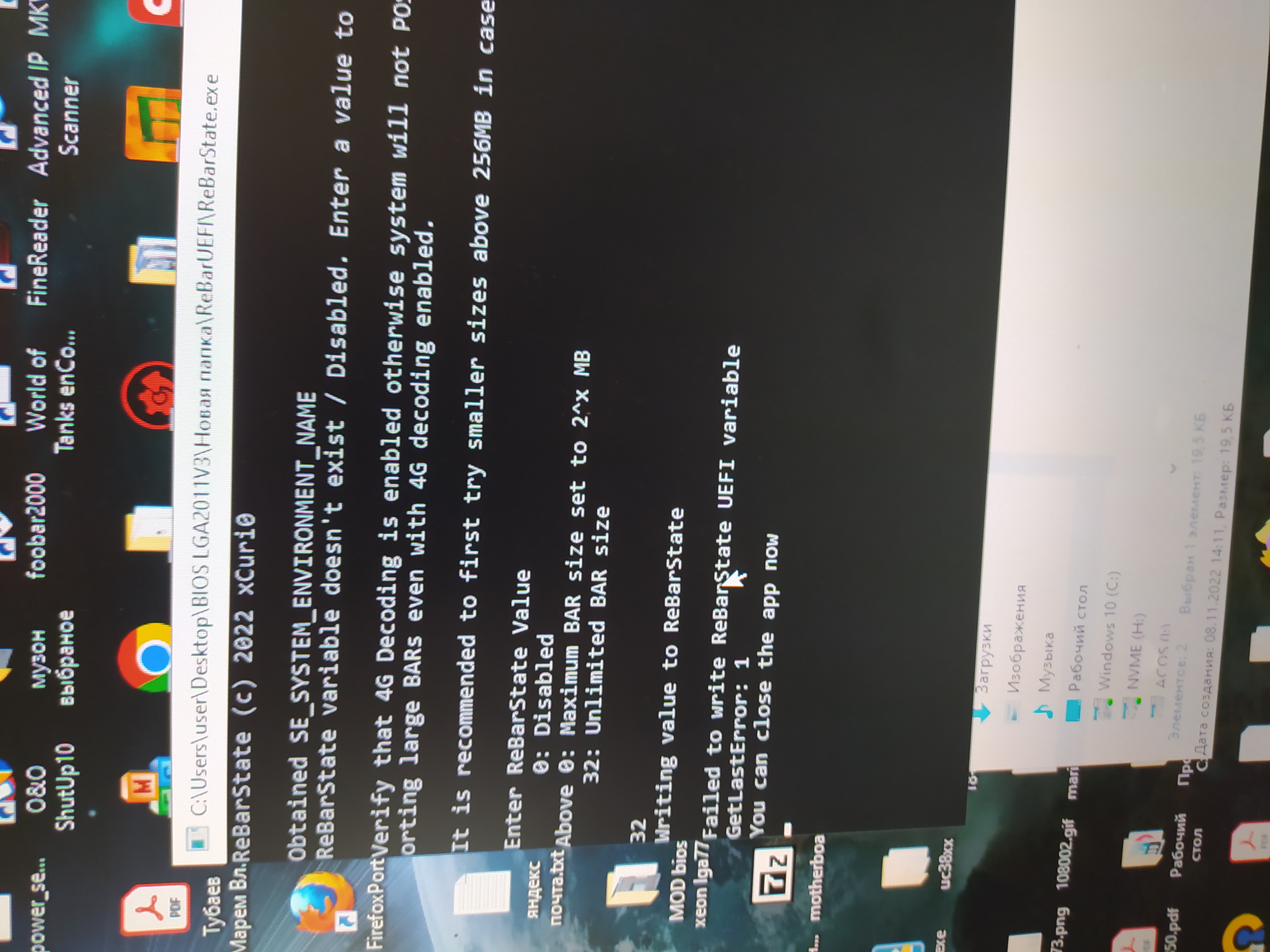 Поставил биос с Above 4G Decoding нет изображения если запускать в режиме uefi , видеокарта рх470 если запускать в legacy то прога ReBarUEFI показывает ошибку - ну тут ясно но почему в uefi режиме черный экран не понятно