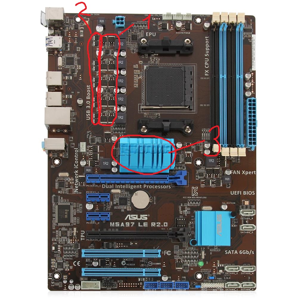 А подскажите, на мать M5A97 LE Rev 2.0 есть смысл ставить радиатор на мосфет? И если да, то какой подходит? Может кто покупал уже где? Радиатор, который рядом с процом - греется ужасно. Даже тронуть его не могу, но где посмотреть температуру - не понятно... Это северник правильно?