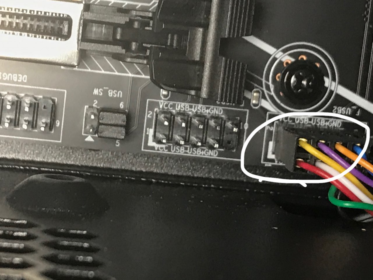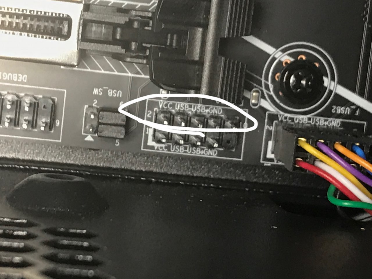 Возможно я стал первой жертвой отсутвия предохранителей USB на плате. Короче сегодня обнаружил, что не работает разьем USB 2.0 на переднюю панель F-USB3... В мультиметер режиме прозвонки на рабочем порте показывает падение напряжения между D+ (D-) и GND в районе 560, на не рабочем разьеме между D+ (контакт 5) и GND где-то 1105, а между D- (контакт 3) и GND 1168... Это по стороне ключа.. На паралельной стороне, то есть контакты 4-6 падение напряжения в режиме прозвонки в норме... Там обвзяка сплошная мелочевка, в переском нало смотреть... Схемы нет.... Блин, похоже на КЗ, контакт D- (контакт 5) в коротком на 1 контакт перемычки USB_SW. тогда как на рабочих разьеме аналогичны D- показывает падение напряжения в режиме прозвонки 1590... Какие мысли, уважаеиые колеги... Жду Ваших предположений... И подскажите за, что отвечает джампер USB_SW ? На всякий случай подскажите, дайте ссылку на алиэкспрес на USB 2.0 PCI-E с разьемом под переднюю панель, если екто покупал или видел... Спасибо... Фото распиновки разьема для наглядности.