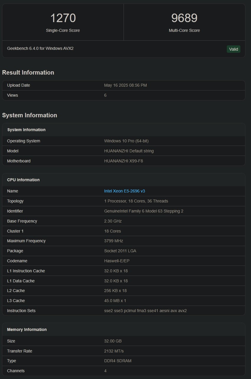 На 12% медленнее в CPU-Z. Поэтому менять 2696v3 имеет смысл только если нагрузка серверная и менять как минимум на 22 ядерный 2699v4 когда он подешевеет. А в домашнем ПК 2696v3 остаётся одним из лучших вариантов на этой платформе. Одно понять не могу v4 в Geekbench 6 действительно мало что дают, или мне неудачные результаты попадаются?