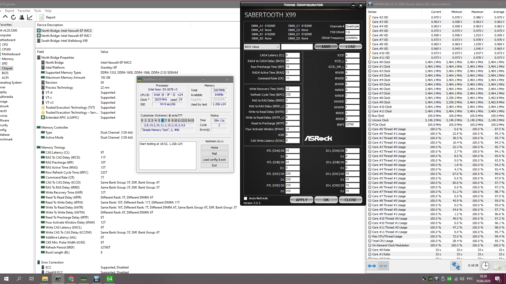 Внимание всем!!!При переходе с x79 на x99, следует иметь ввиду, что на x99 память разгоняется намного хуже Планки обьемом 32 Гб, могут не заработать! Есть случаи когда вообще не работает, или работает только в двух или трех канале...! Есть информация, что четырехранговые планки работать полноценно не будут, а только двухранговые! Также есть информация, что заводятся только низковольтные планки!