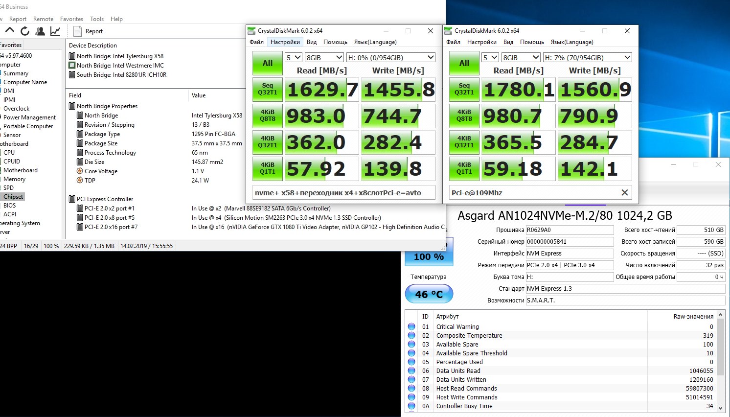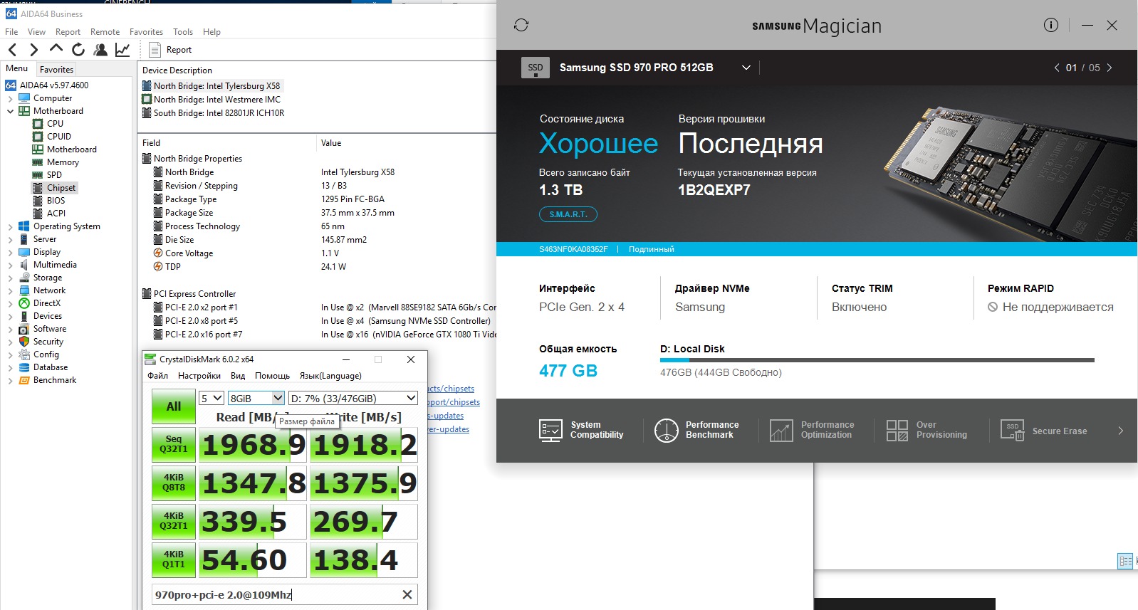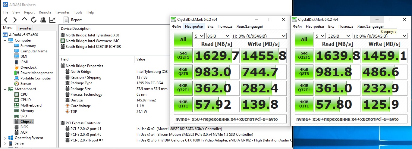 кстати попробовал тут на дэшман переходниках а ля 12 NVME диски и выше 109 по Pci-e они уже не инициализировались(надеюсь что виноваты переходники, а не диски ). С деланием их загрузочными не экспериментил. Показатели получились такие(переходник типа x16, в реальности всё равно разведён на x4)