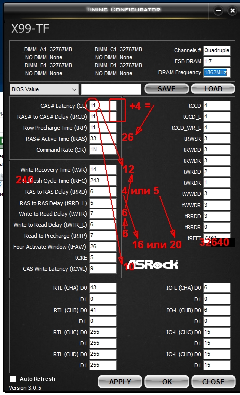 4ранги эт куль , на досуге можешь такое↓ опробовать(в оптимуме конечно с первой(СL) 10кой бы) tCWL - меняется только в биосе, остальное можно в винде применять-тестить, а там чем чёрт не шутит и до третичек доберёшся