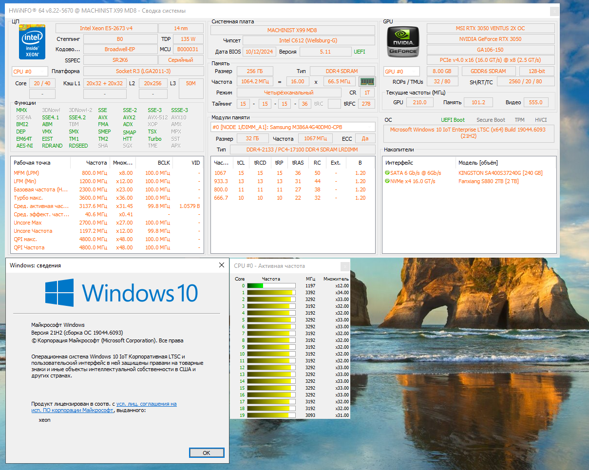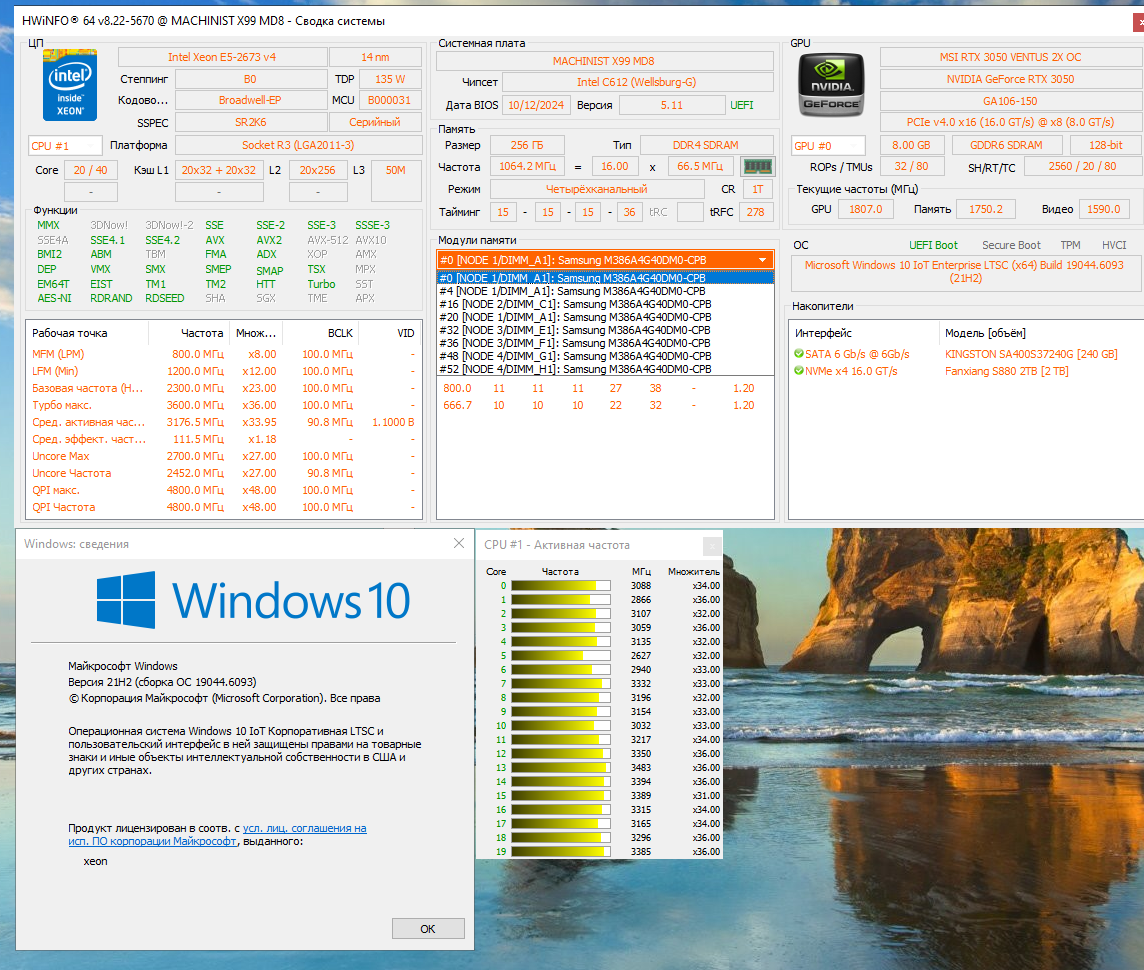 2.VEugene Продаю комплект вот такой: https://aliexpress.ru/item/100500314818 ... 1667062299 Только камни 2666 v3 Состав: HUANANZHI X99-F8D LGA2011-3 Xeon E5 2666 v3 - 2 шт. Кулера для CPU - 2 шт. 8G DDR4 2133 REG ECC память - 2 шт. 128G M.2 NVMe SSD (китайский) - 1 шт. Комплект был запасной, куплен целиком мной лично, заменены в нем только камни (изначально были 2690 v3) Все проверено, запускается. Цена 22000 руб. В Москве.
