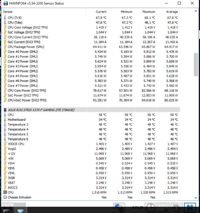 Еще заметил, что в Bios в мониторе отображает вольтаж корректно тому что я выставил, а в ОС в CPU-Z и AIDA например вообще некоректно, ибо например наприжение ЦП показывает - v0.589-0.600 а в биосе 1.1750 . HWiNFO кстати более корректно показывает напряжение относительно выставленным в настройках bios