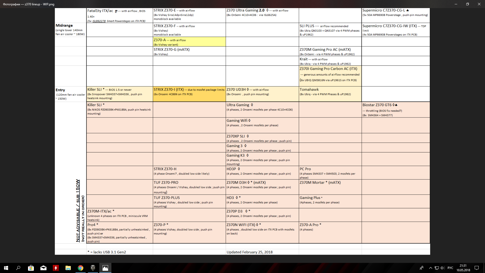 Твойврагhttps://www.hardwareluxx.de/community/f ... 78256.html ага до 4.7 твои стриксы курят бамбук. для разгона их не берут. аналогичная экстрим 4 это prime z370-a, а че там у гигабайт аналогичного хз. и во-вторых - много зависит от самого проца