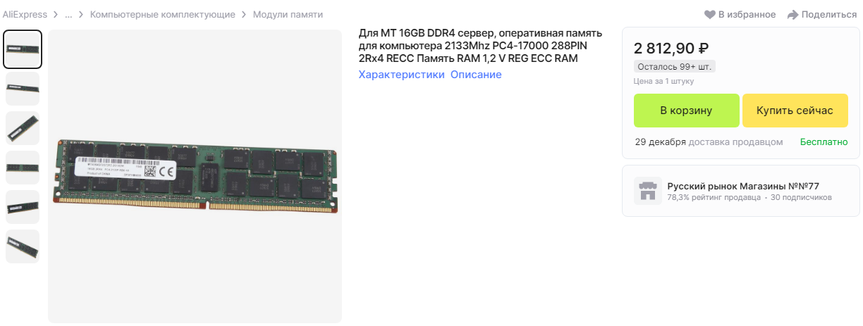 Память ddr4 2133 64 reg превысила 10 тыс. руб. В середине недели были продавцы с 4.5 тыс.