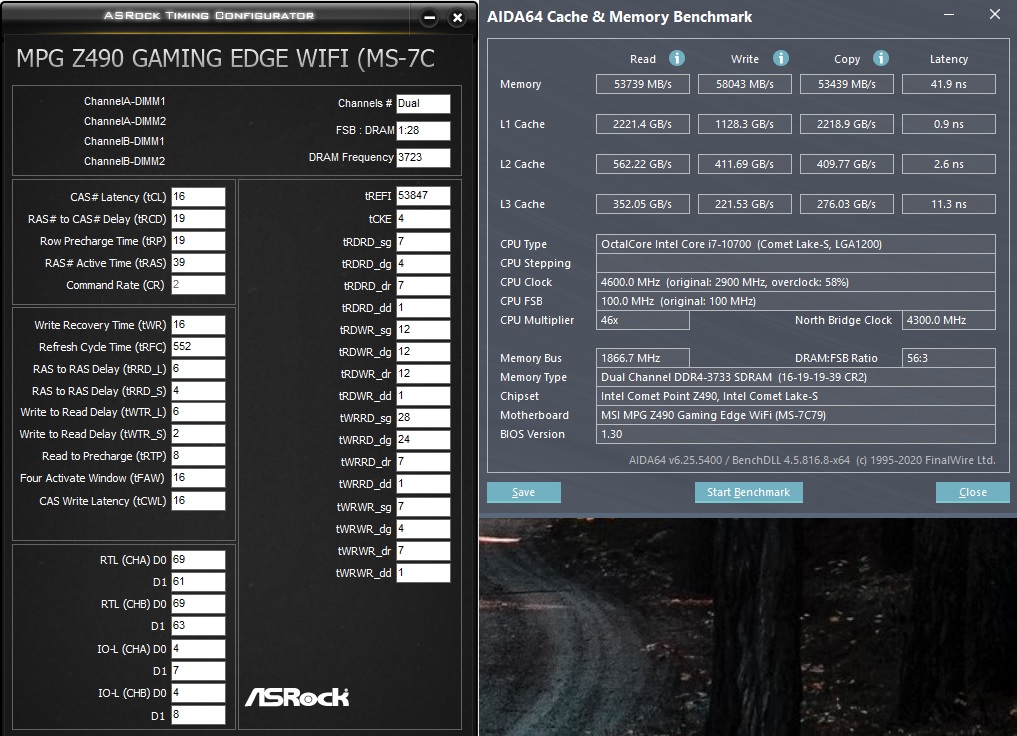 До этого было 42нс+, частоты, тайминги памяти ничего не менял