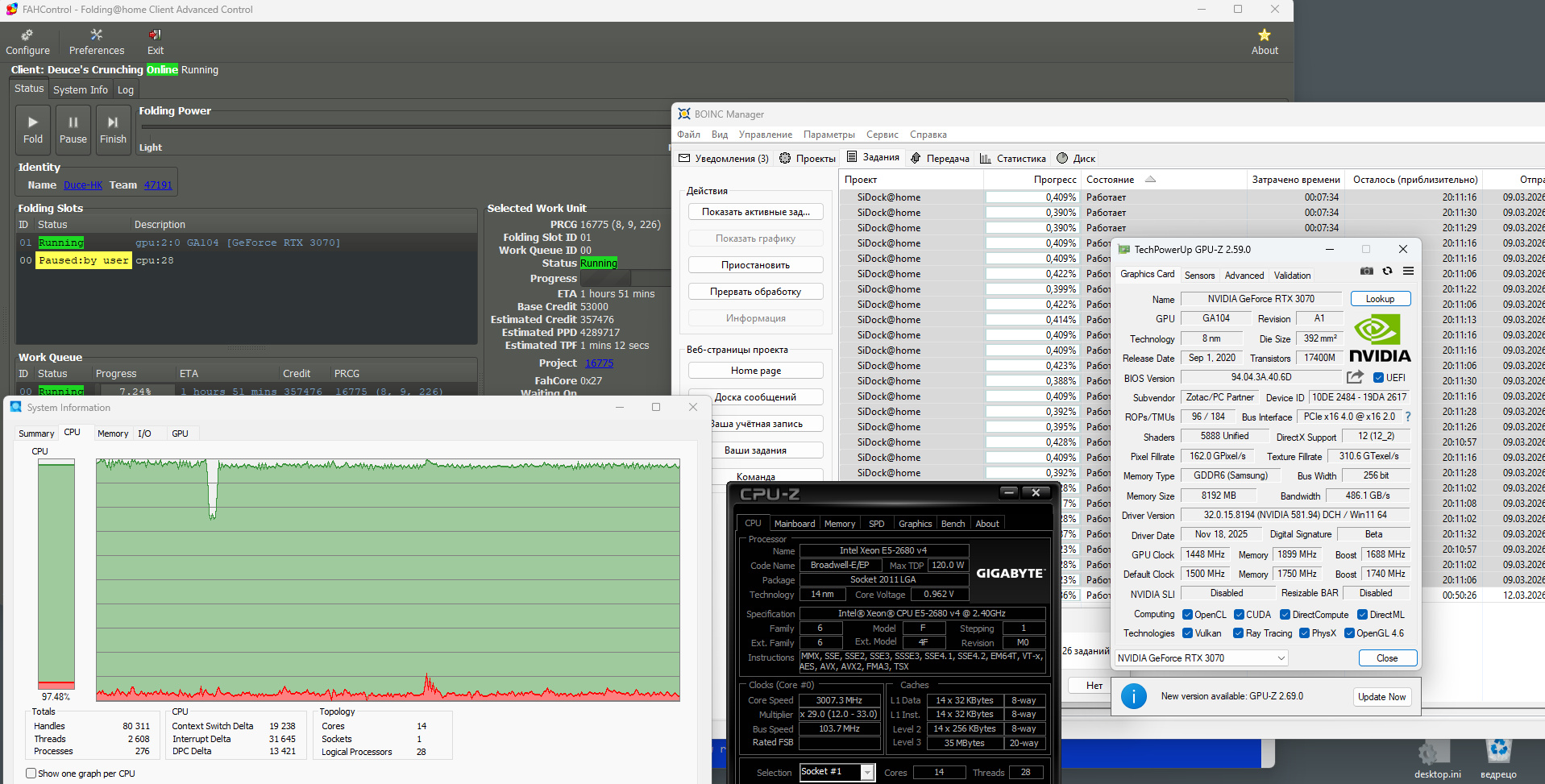 Ну он сам по себе свою цену за 3 мес окупает как бы...)) камешек (с учетом того что брал за 2800 и 3000). Плохо чтоли. 14600 так не может точно. В последний раз перелезая с 2690v4 на 2696v4 за одни камень добавил с учетом продажи старого, 800 руб, за второй - тыщу. Эти 1800р на апгрейд за мес+неделю как раз и намайнивает такая машинка. Переходил потому что можно больше выжать а летомо наоборот на базовой частоте они экономиченей. Летом базовая тк нагрев жилища июне-июле-августе это лишнее. Тянут тепловой поток в разные стороны с кондиционером кто кого переборет. Но по факту, кондей спользовался в прошлом году 1 неделю всего.