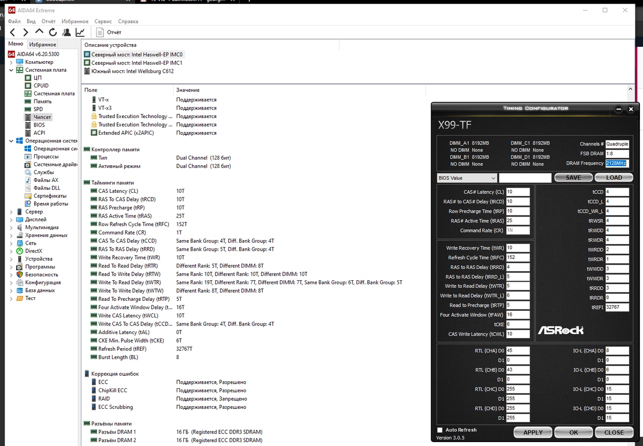 Поделюсь своими исследованиями DDR3 Desktop vs server ecc reg платформа X99-TF + E5-2678V3 DDR3 Desktop 2x8Gb Ballistix Tactical 1866 9-9-9-27 Dual channel