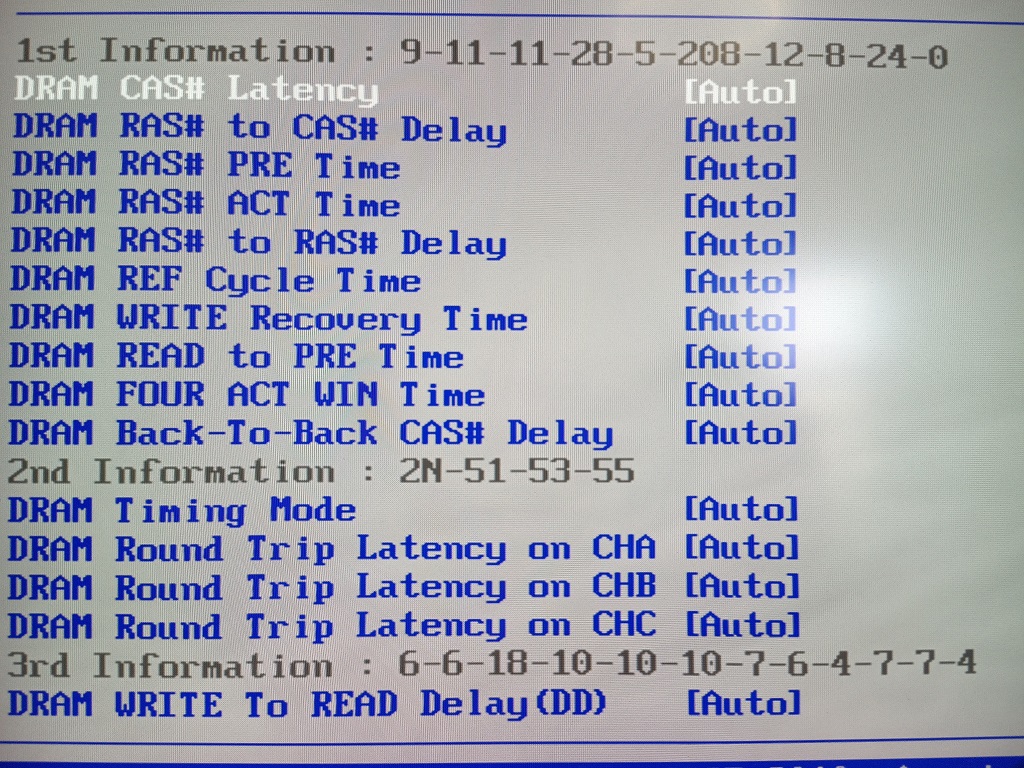 4494 Ну смотри, один из вариантов - это конечно же отредактировать тайминги в сторону стоковых самой слабой из них, либо чутка повысить напряжение DRAM BUS с 1.50 до 1.60, а также VTT\DRAM (uncore) с ... до 1.30 хотябы. Это если исключить механику, неисправность плашек, неисправность платы. Просто дело в том, что пока я вчера разгонял память - у меня часть плашек ну никак не хотели работать на выставленных таймингах, поэтому мать просто выкинула их как нерадивых щенков и вместо 24гб заводилась с 16гб и все тут. Плашки-то неодинаковые. Но у меня P6X58D-E - она типа большинством софтин считается твоей аналогом.