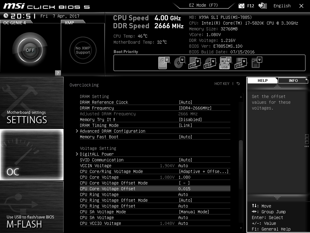 настройки offset на MSI X99A SLI PLUS