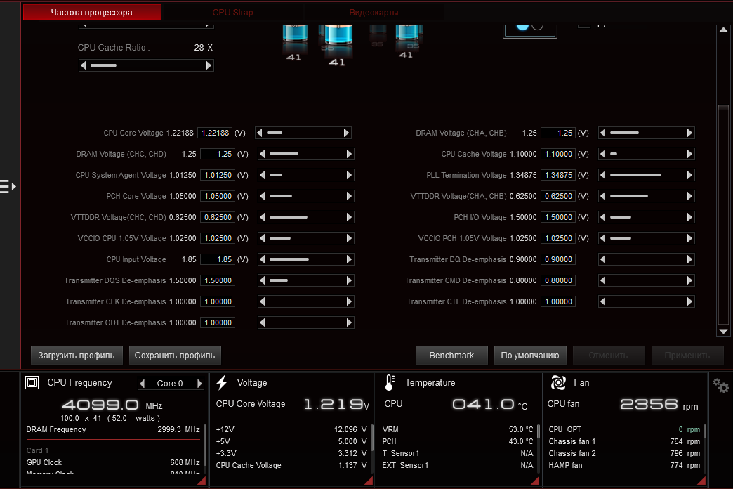 Всем добрый день! комп asus strix x99 и i7 6800 в разгоне до 4,1 и при работе с avx инструкциями на 4.0 настройки на скрине и такая проблема работаю в corona renderer и периодически производительность падает раза в 2 при этом частота не падает ,но после перезагрузки все становиться нормально, с начала думал что проблема в параметре который отвечает за приложения с avx поменял с авто на 1 тоесть чтобы при работе с avx частота падала до 4,0. Но это тоже не помогло в чем может быть проблема ? с охлаждением тоже все ок corsair h110i при рендере выше 50 не прогревается Всем заранее спасибо