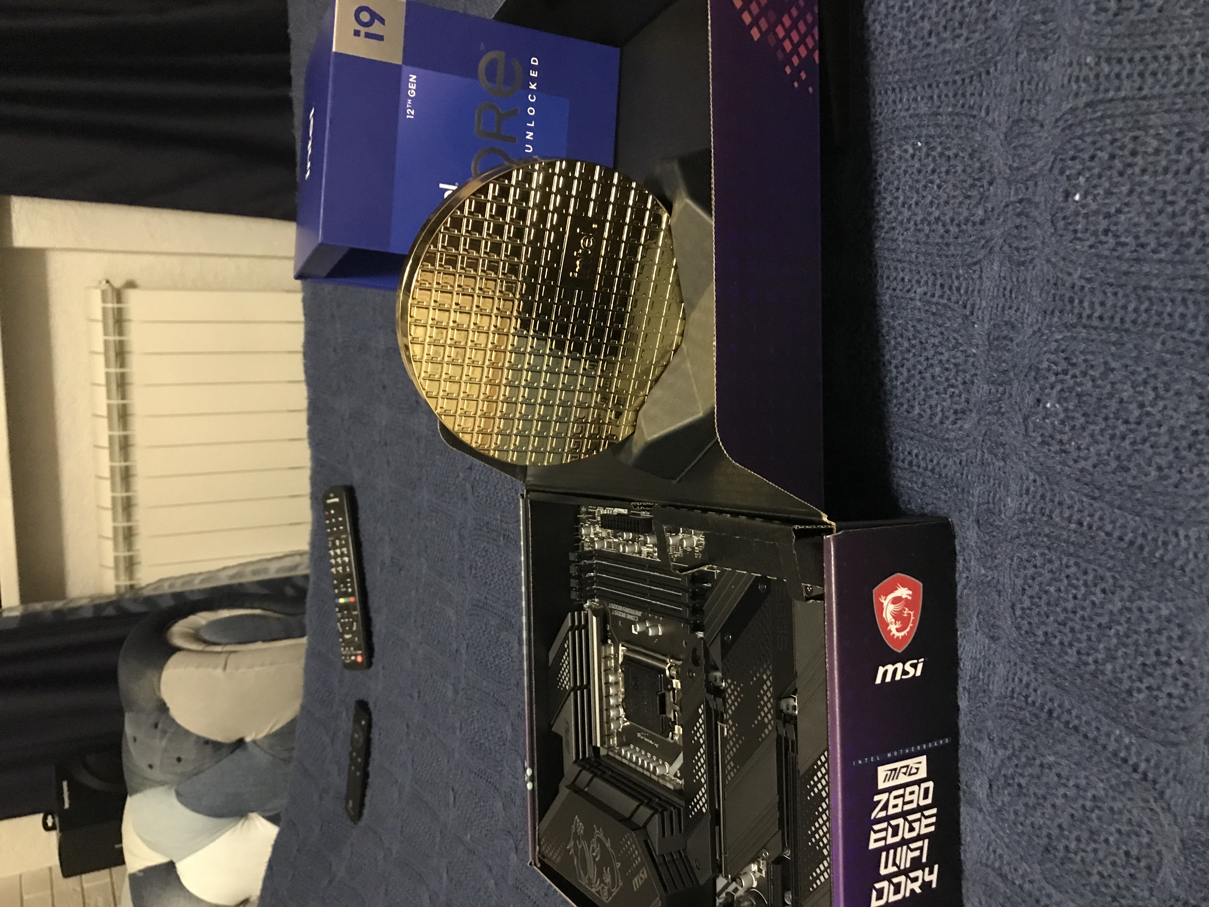 Привезли мне MSI Z690 EDGE WIFI, увесистая, красивая...Проверил с лупой ножки, пощупал радиаторы на предмет плохо затянутых болтов...Всё топчик, на 1ый взгляд... I9-12900K итд, пока всё в пути...Намедни ожидаю... Ещё 1 фоточка ню...Отклеил наклейки...