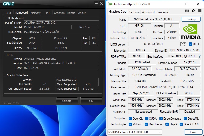 Ребят, помогите пожалуйста. Уже весь интернет облазил, но так и не нашел ответа на свой вопрос. А заключается он вот в чем. Собрал новый комп себе, мать Asus Prime B650M-R. Почитал отзывы, вроде все норм. Взял. Но так получилось что денег не хватило на видео карту, и пришлось ставить то что валялось дома. А именно - GTX 1060 6Gb. В спецификации к этой карты указано, что она работает на PCI-E X16 3.0. А у материнской платы - PCI-E X16 4.0 Ну, думаю все будет тип топ, погоняю на этой карте пока денег не насобираю на новую с PCI-E 4.0 Значит собрал я ПК, в мамку вставил в верхний разъем ссд М2 NVME, все запускаю, и что я вижу, видеокарта работает почему в в режиме PCI-E X8 3.0 Уже голову сломал, почему вставленная видяха с PCI-E X16 3.0 работает у меня на мамке в режиме PCI-E X8 3.0 Хотя сама по себе она - PCI-E X16 3.0