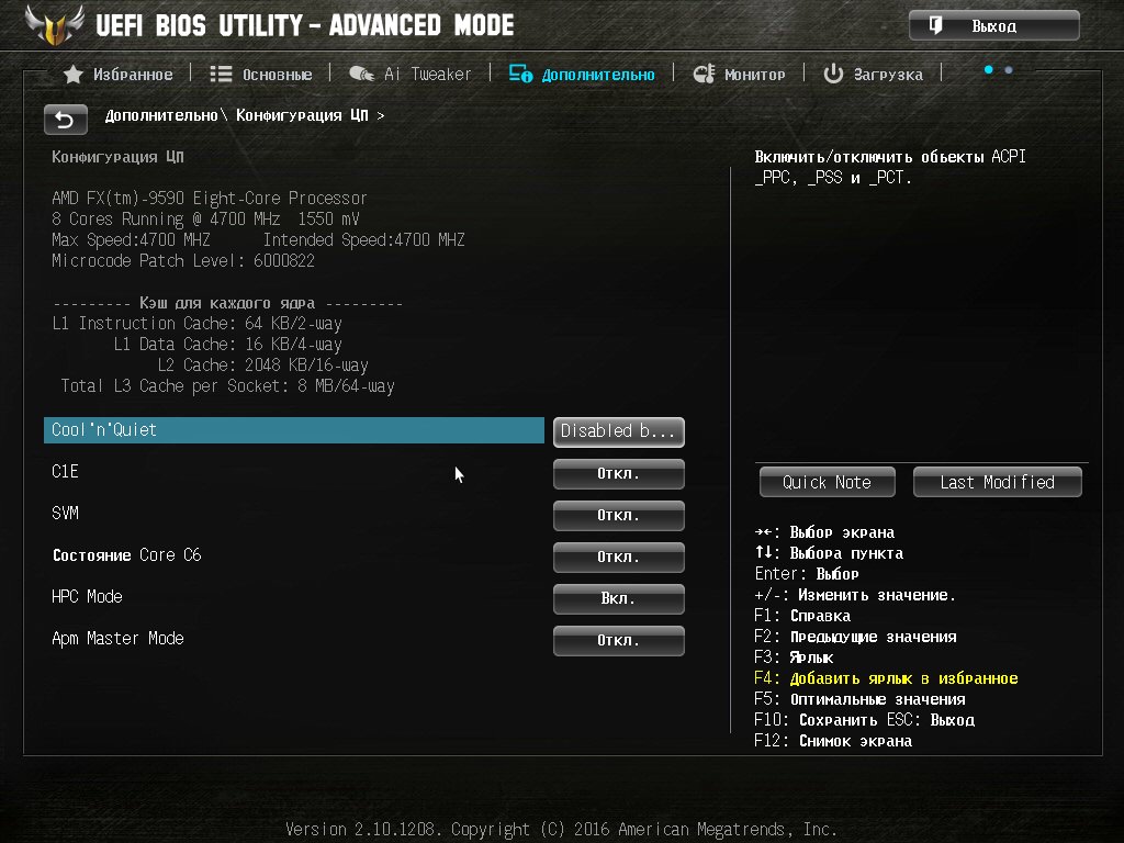 В сравнении с GIGABYTE 990FXA UD3 R5, все оборудование как и было, кроме (сменена паста на процессоре на Thermal Grizzly Kryonaut была GELID GC-Extreme, водоблок на северный мост пока не ставил, на гиге стояла). MOBO мощнее, ваттметр системника в простое, при 5 ГГц, показывает около 240 Ватт на гиге было около 200 Ватт, просадила блок питания по 12 В, отзывается на изменения значений БИОС "адекватно". По температурам - на процессоре снизилась на 5 градусов, на ВРМ с тыла снизилась на 8 градусов, северный мост выросла на 8 градусов. BIOS на картинке.