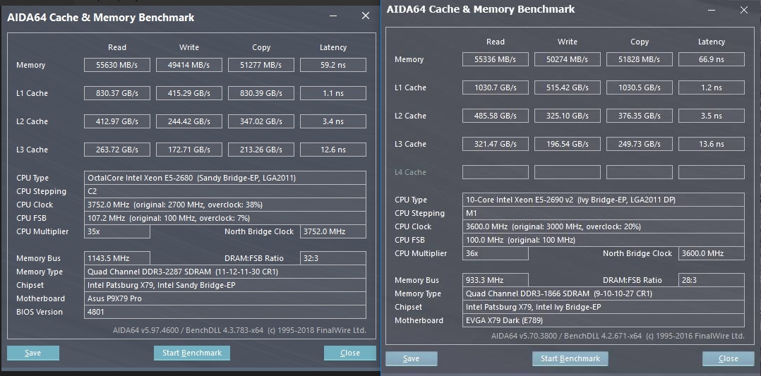 E5-1650v1 - память Samsung PC3-10700 (не PC3L), 4 модуля по 8 Гб, погналась до 1866, полёт отличный. До этого была Samsung PC3L-12800 (1600Mhz) ни в какую не хотела гнаться, вылетала в синьку из-за пониженного напряжения.