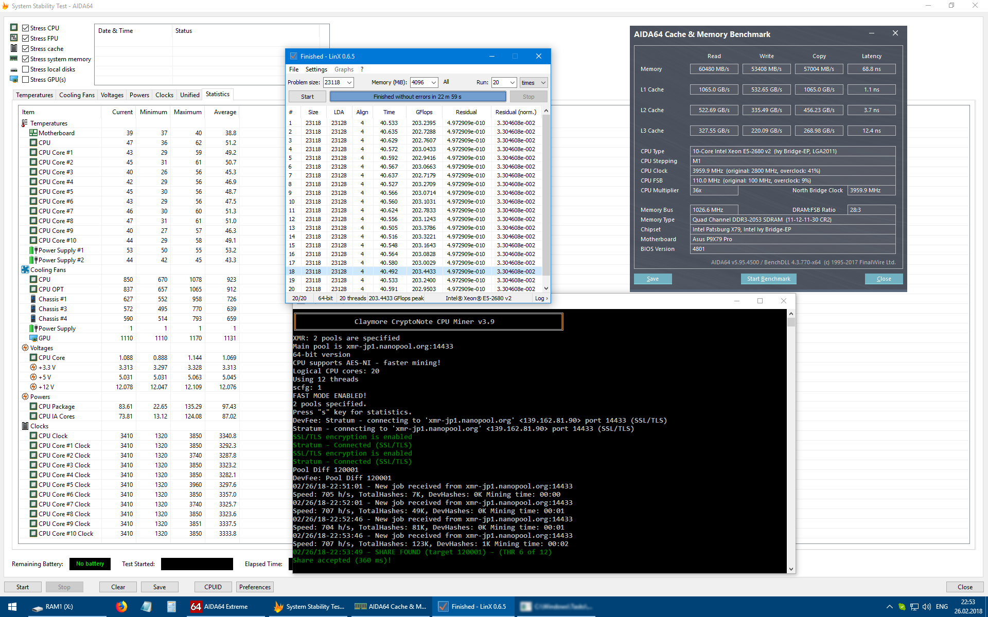 У вас макс. пропускная способность памяти которую поддерживает процессор Xeon E5-2690 51,2 GB/s 1600 PC3-12800*4 как раз и получается 51,2