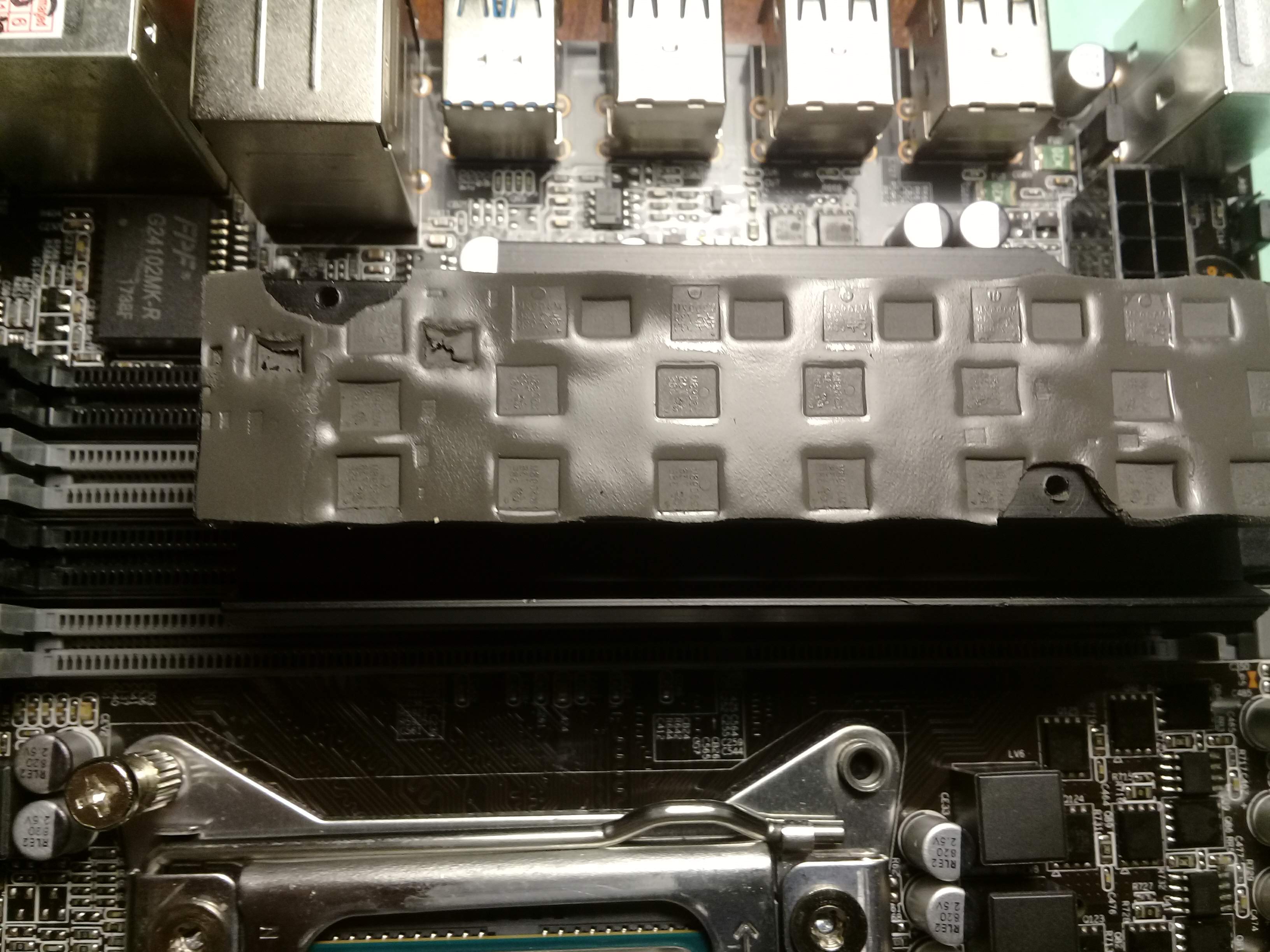 А под радиатором VRM у меня были разные термопрокладки, хорошие и обычные, голая термопаста была даже — практически без разницы. Проблему решил поставив охлаждение на заднюю сторону материнки.