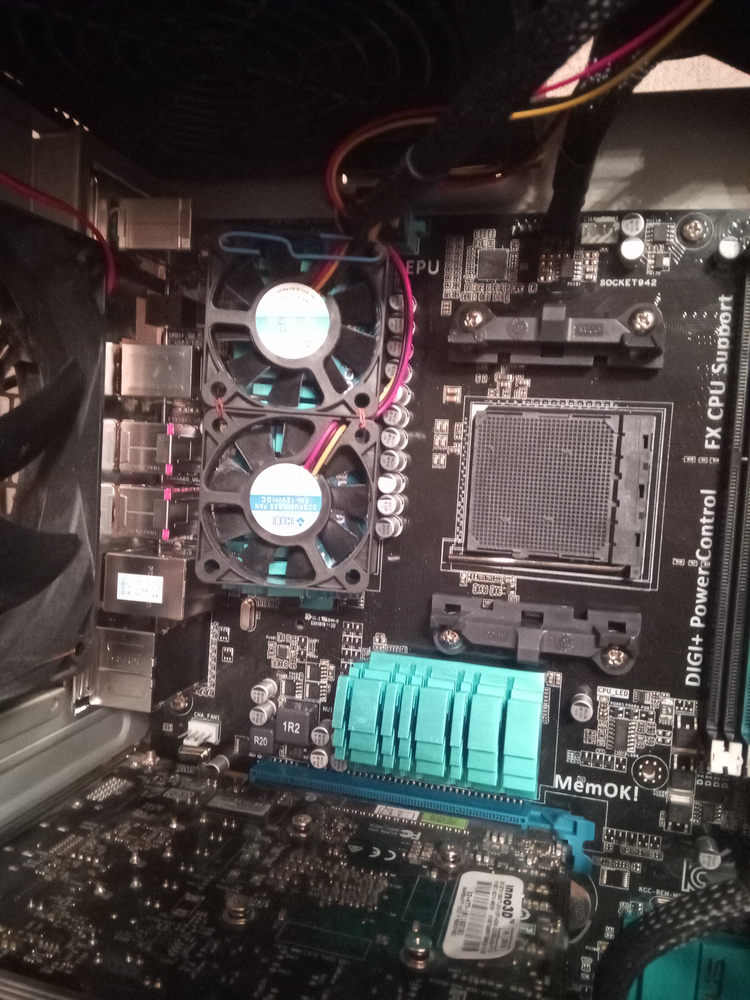 Зю Я бы не стал заморачиваться с охладом материнки сзади, вообще говоря это изврат. Во первых мосфеты отдают тепло на плату большей частью, охлаждать их пластиковый корпус не первостепенно, если есть обдув околосокетного пространства и радиатора с лицевовой стороны - этого достаточно. Второе - с оборотной стороны скорее всего мосфеты нижнего плеча - они греются заметно слабее чем верхнего (больше мощность, меньше сопротивление). Разработчики дизайна PCB тоже не дураки правда? : )