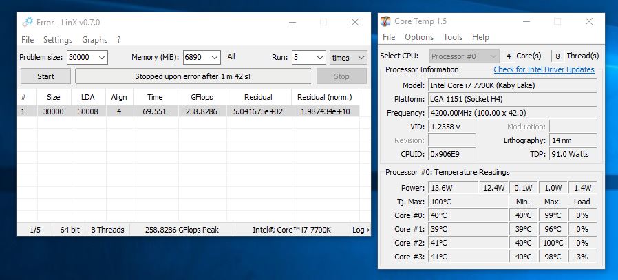 miwa до напряжения 1.42 на CPU LinX вылетал синькой спустя минуту. На 1.42 ни одного круга не прошёл из-за ошибки какой то ... Куда копать, не подскажете?
