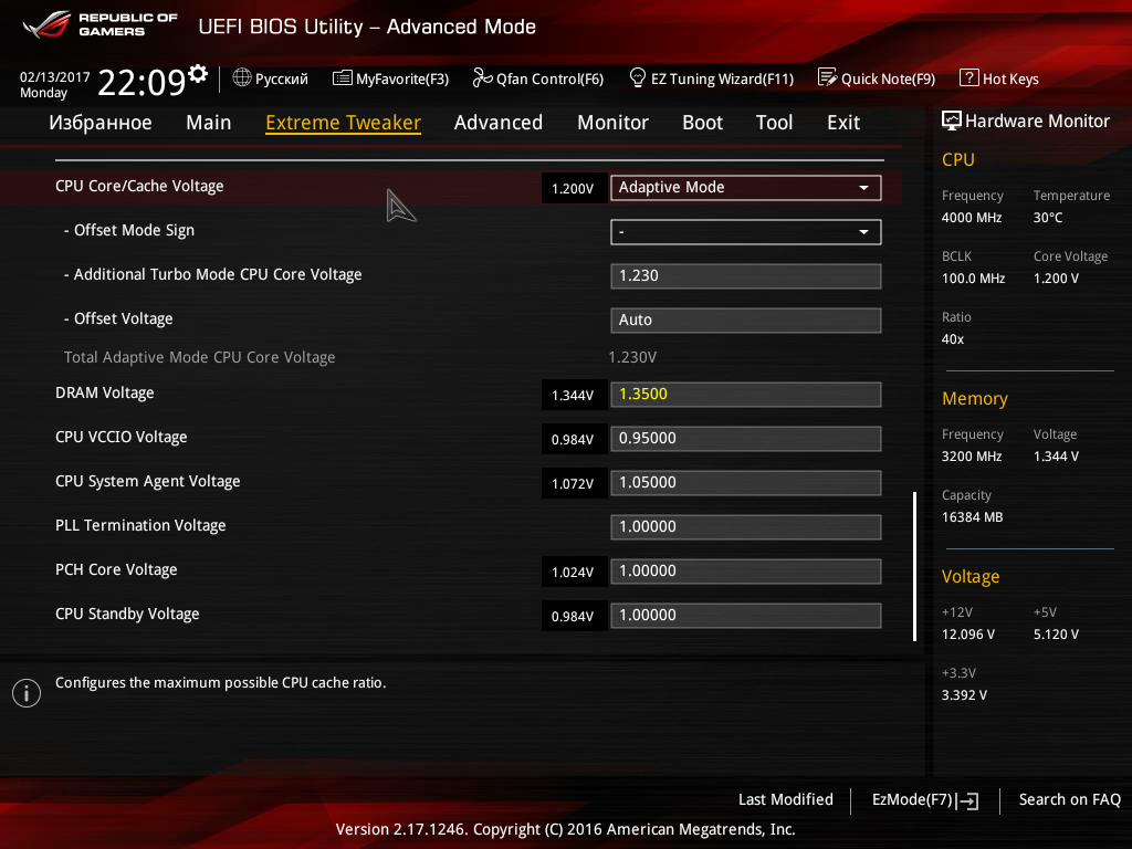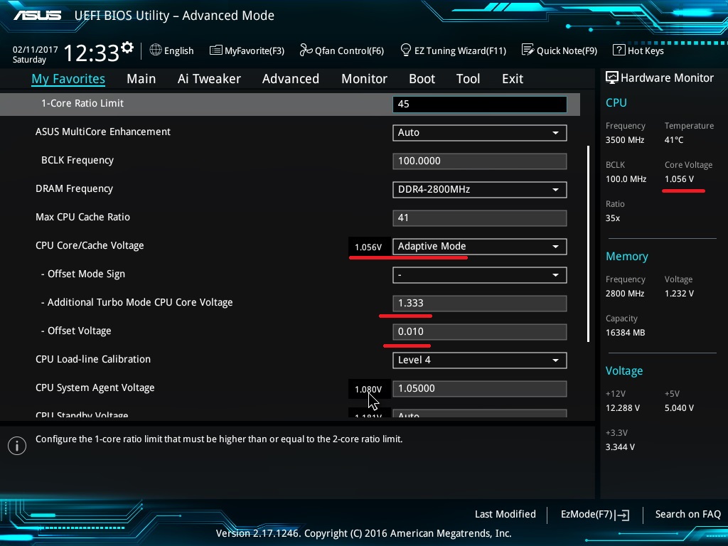 Настройки Vcore в bios (Adaptive Mode, Asus Z170-A, i5-6600K)