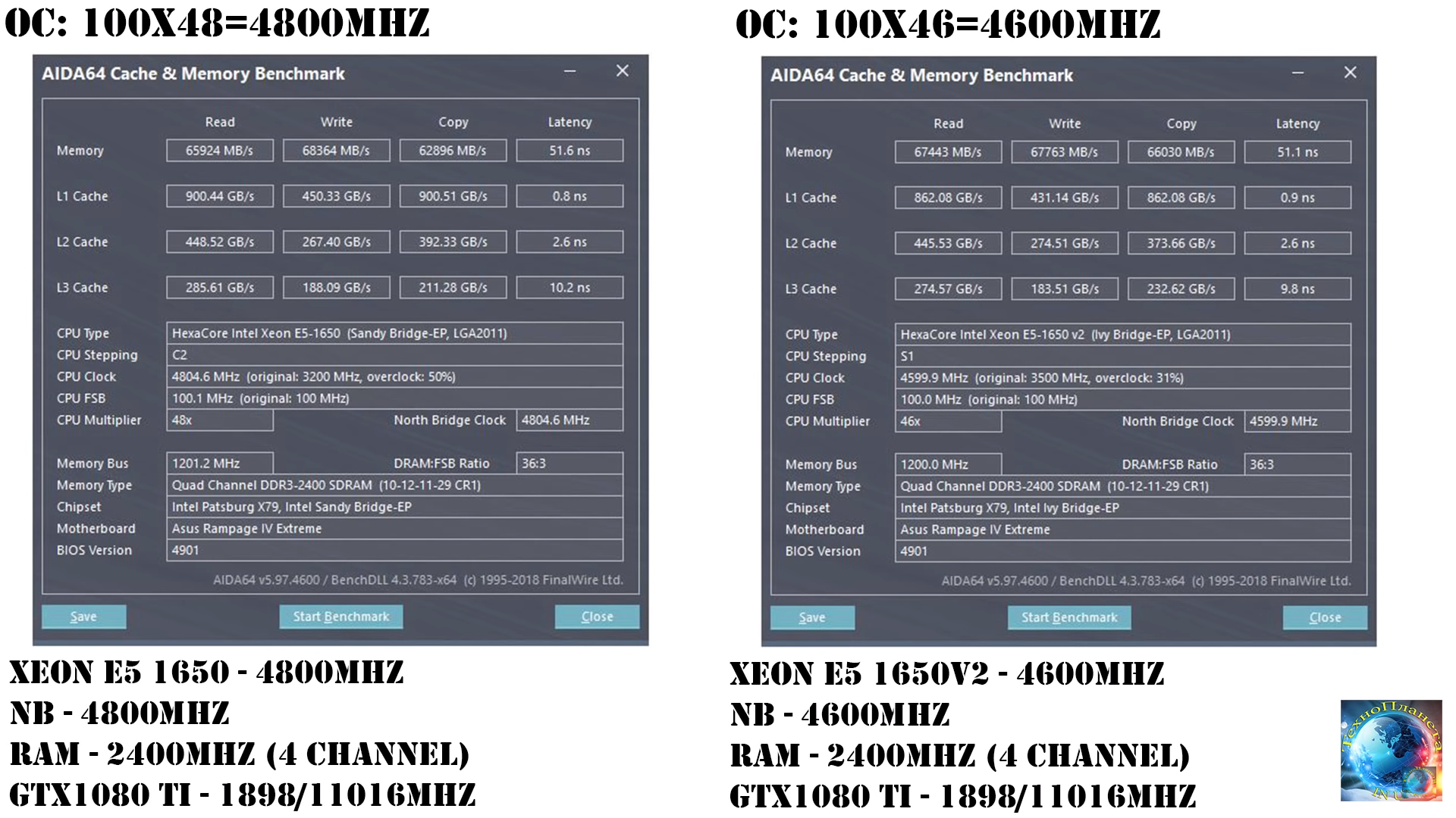 платформа не вчера появилась. и тестов в интернетах предостаточно. скрин ведь не трудно найти? и хватит людей в заблуждение вводить, что якобы 1650в1 не умеют в память выше 1600мгц контролер держит вплоть до 2500-2700 мгц, лиж бы мать гнать могла и память гналась ну а если вам кажется что 50-54 гбс для 1866 в кваде маловато ведь 14900мбс*4=59 гбс, что то тут где то режется, то я тут всё, теория теорией как бы. ну и никто как бы вам не запрещает найти тесты 1600мгц в кваде и сравнить так же вы можете найти тесты какого нибудь 6850K-6950K с память ддр4 2400мгц в кваде. и убедиться что результаты почти такие же как и у 1650в1 с 2400 на первом скрине