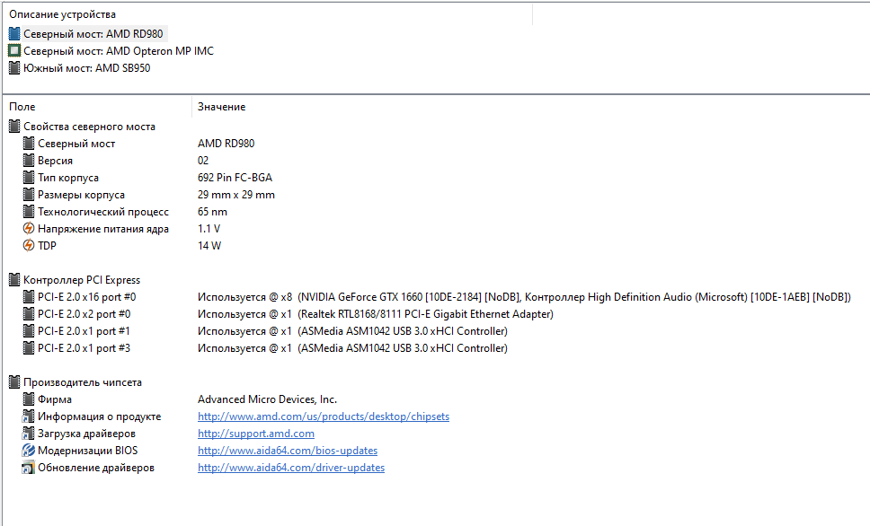 скинул скрин opteron. мне вот одно интересно. сейчас у меня белый слот PCIe x8 свободен. значит вроде как делёжки линий между ними быть не должно. но почему-то на видеокарту, подключённую к верхнему слоту, выделено только 8 линий PCIe вместо 16. хотя видеокарта Palit GTX 1660. в ней-то точно должны использоваться все 16 линий.