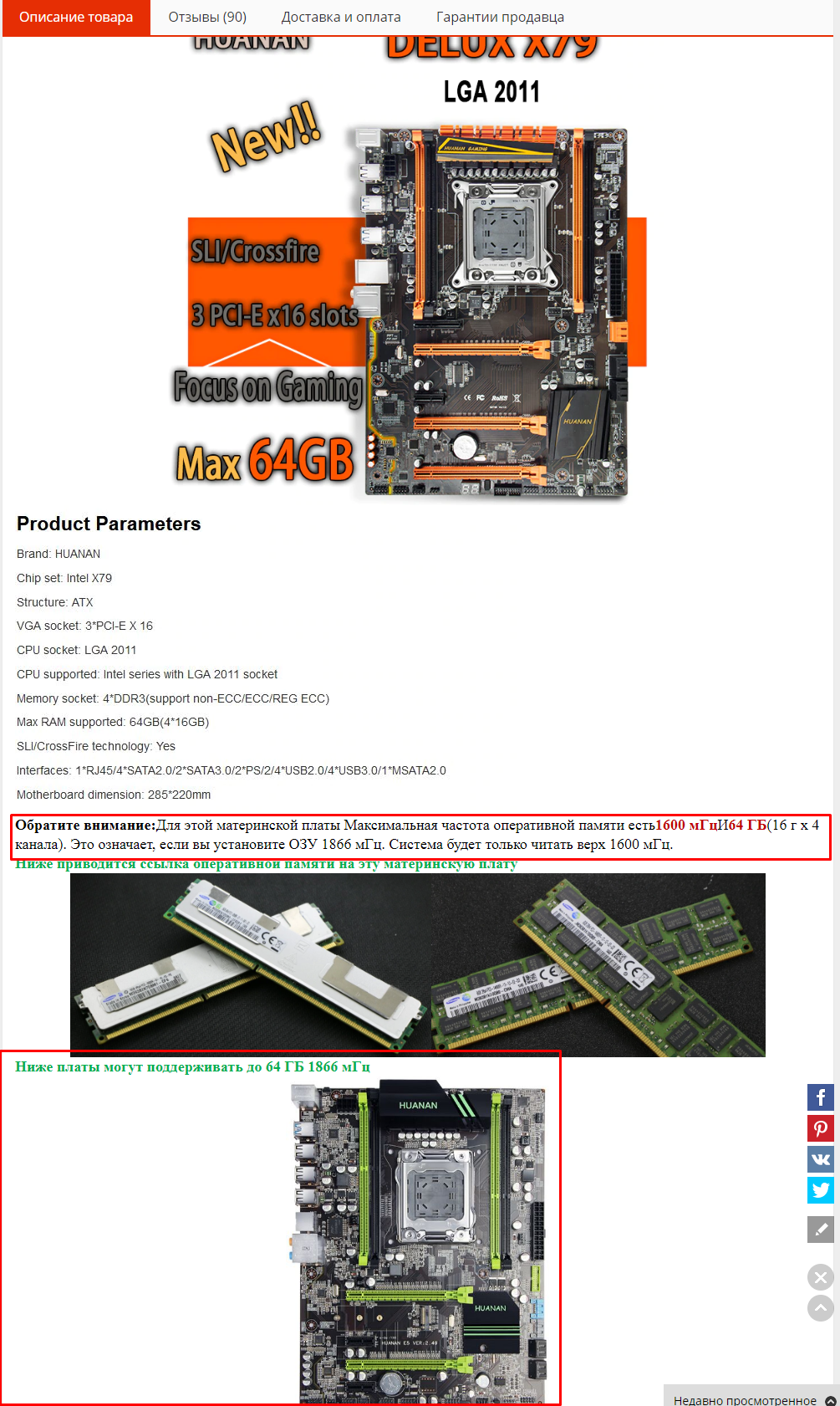 Внимание: на Али массово продается перемаркированная на 1866Мгц память! Много случаев когда на 1866Мгц вообще не заводится, в случае успеха покупатель обнаруживает завышеные тайминги! Детали: тыц1, тыц2, тыц3, тыц4