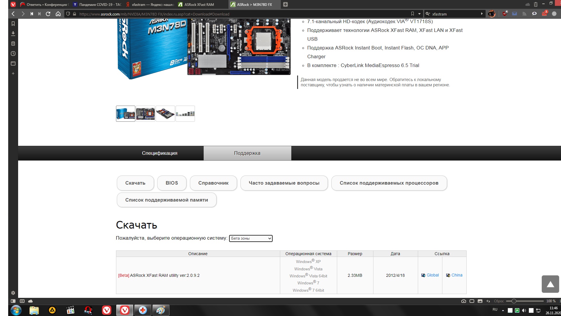 Выбираете свою модель мат. платы: ASRock XFast RAM Далее, в разделе "Поддержка" - "Скачать" выбираете "Бета зоны" вместо конкретной ОС. Должно быть предложено ПО версии 2.0.9.2:
