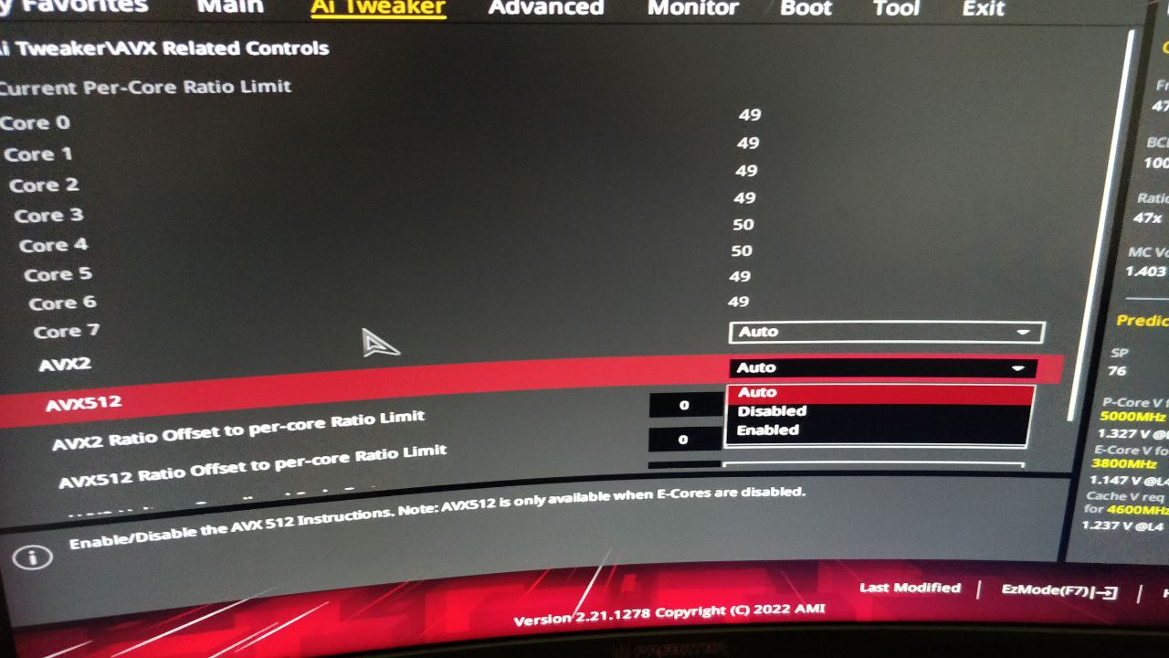 Слышал 12900K поддерживает AVX512, но поддержку отключили на какой то версии биоса. Я откатывался на все предыдущие прошивки, но ни в одной cpu-z не показал наличие avx512. Отключили через микрокод процессора или cpu-z врёт?