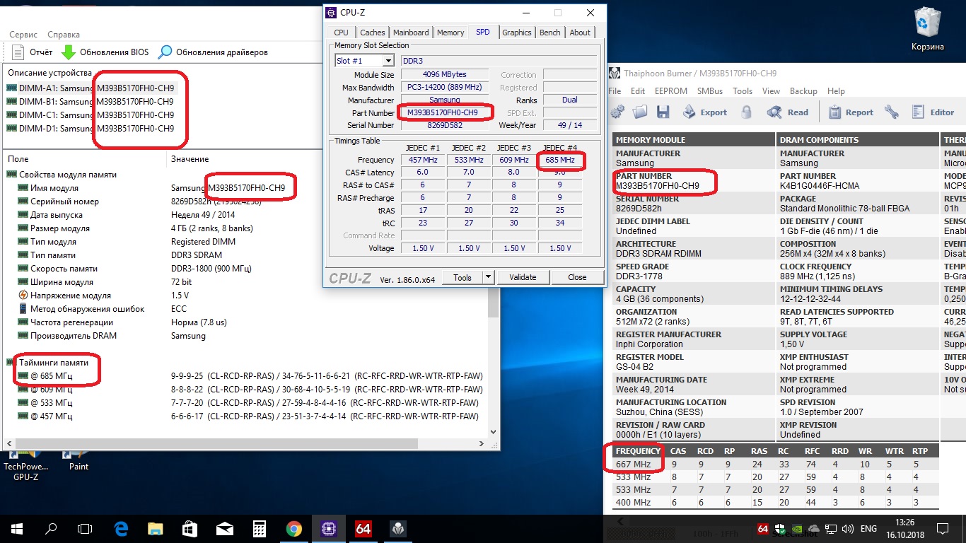 Прошу подсказать, купил память SAMSUNG 1866 на AliExpress, маркировка модуля на лейбле и SPD отличаются, тайминги в SPD максимум для частоты 1333, на частоте 1866 память заводится, но при любых таймингах в тесте AIDA 64 вылетает. Неужели фейковая память или я что-то не то делаю?