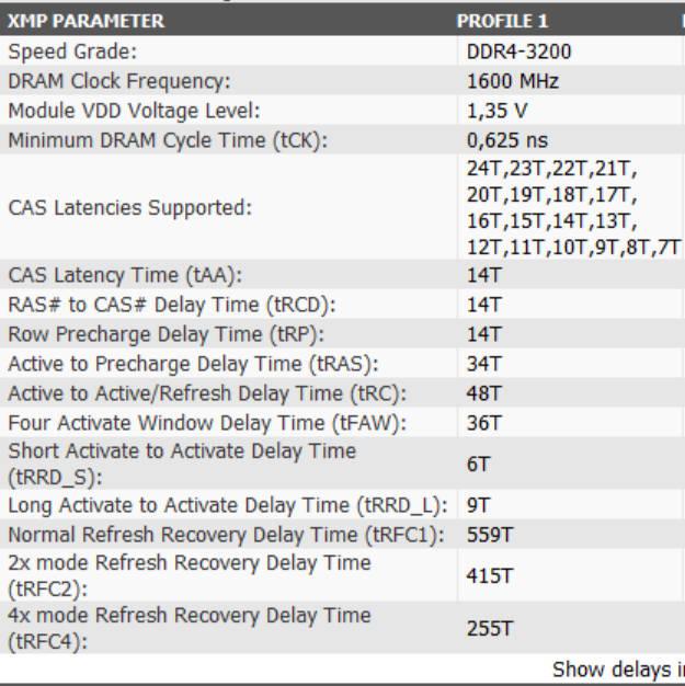 Это скрин, но на фото из BIOS не похоже. Тем более это никак не поможет в подборе таймингов, так как есть определенные зависимости в том как и какой тайминг выставить. Производитель ставит завышенные, что бы обеспечить максимальную совместимость. При этом XMP профиль не гарантирует, что память на нем будет работать стабильно на определенном железе. В сети много отзывов, о том что память не заработала на XMP профиле. P.S. Я настаиваю на том, что настройки для оперативной памяти нужно ставить вручную, а XMP использовать только как справочный материал при подборе памяти.