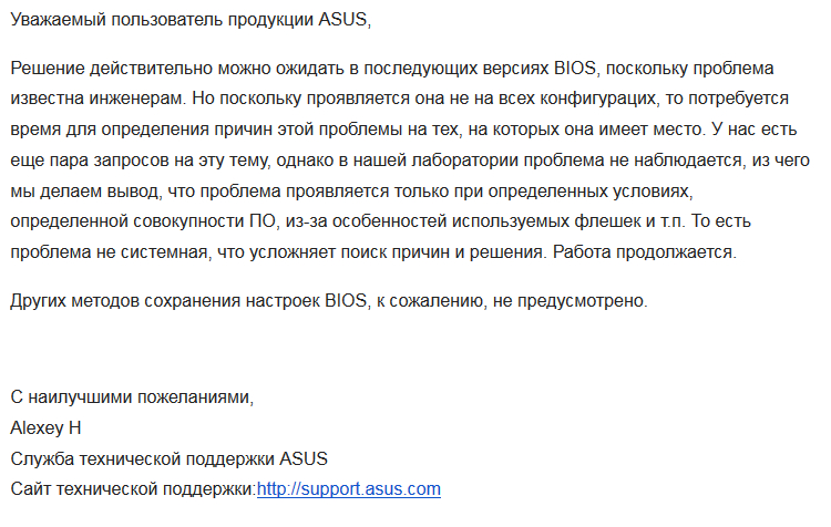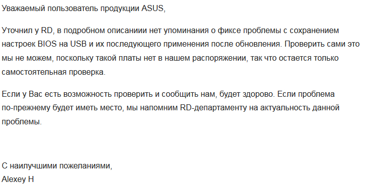 И ещё раз последний ответ Asus