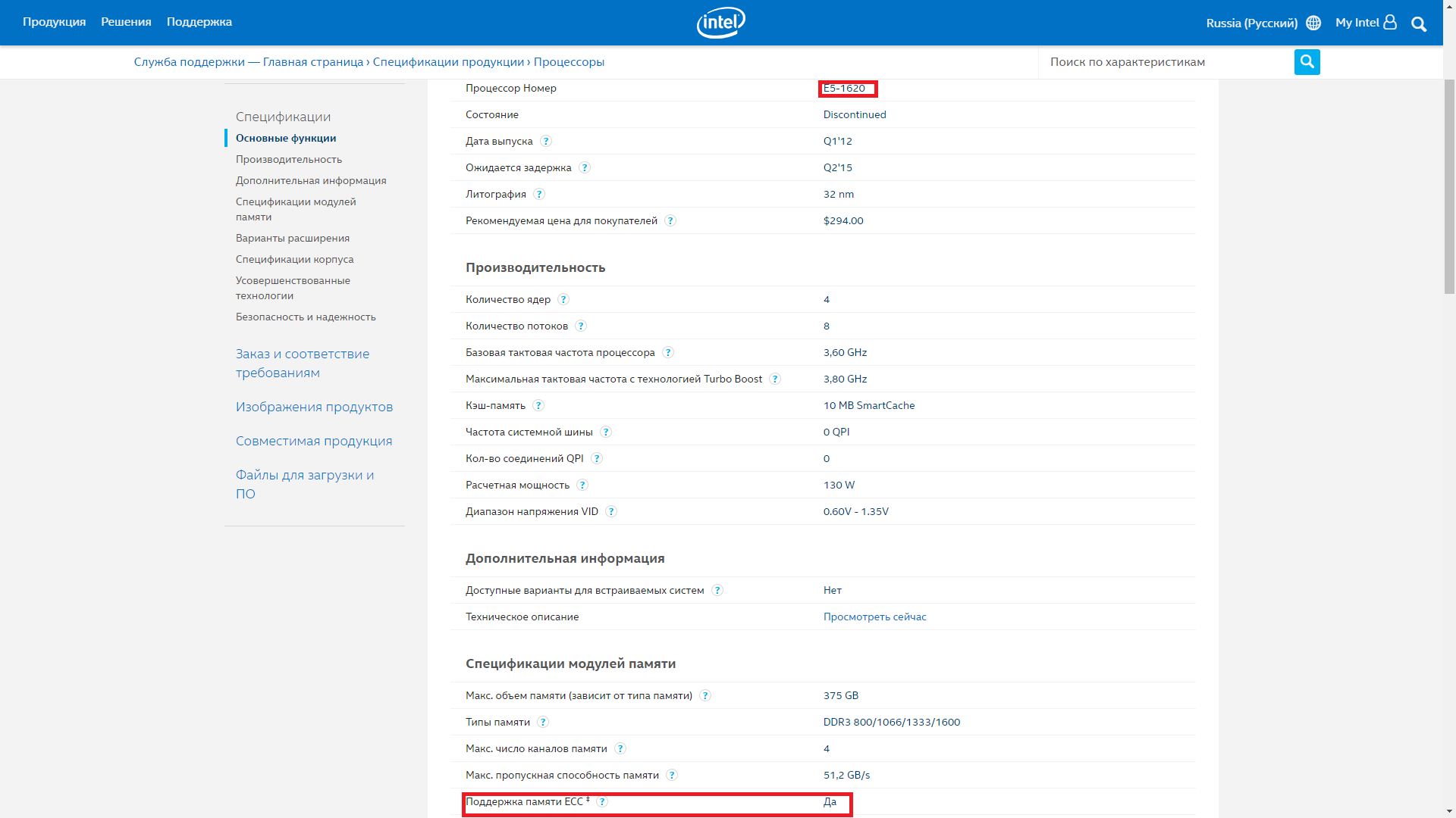 как говорили на предыдущей странице, между процом и памятью на материнке нет никаких контроллеров... ищем свой проц в базе интела, и смотрим поддерживает ли он ECC память... например зионы держат, а и7 4930к(и другие) нет... на одной и той же матери...