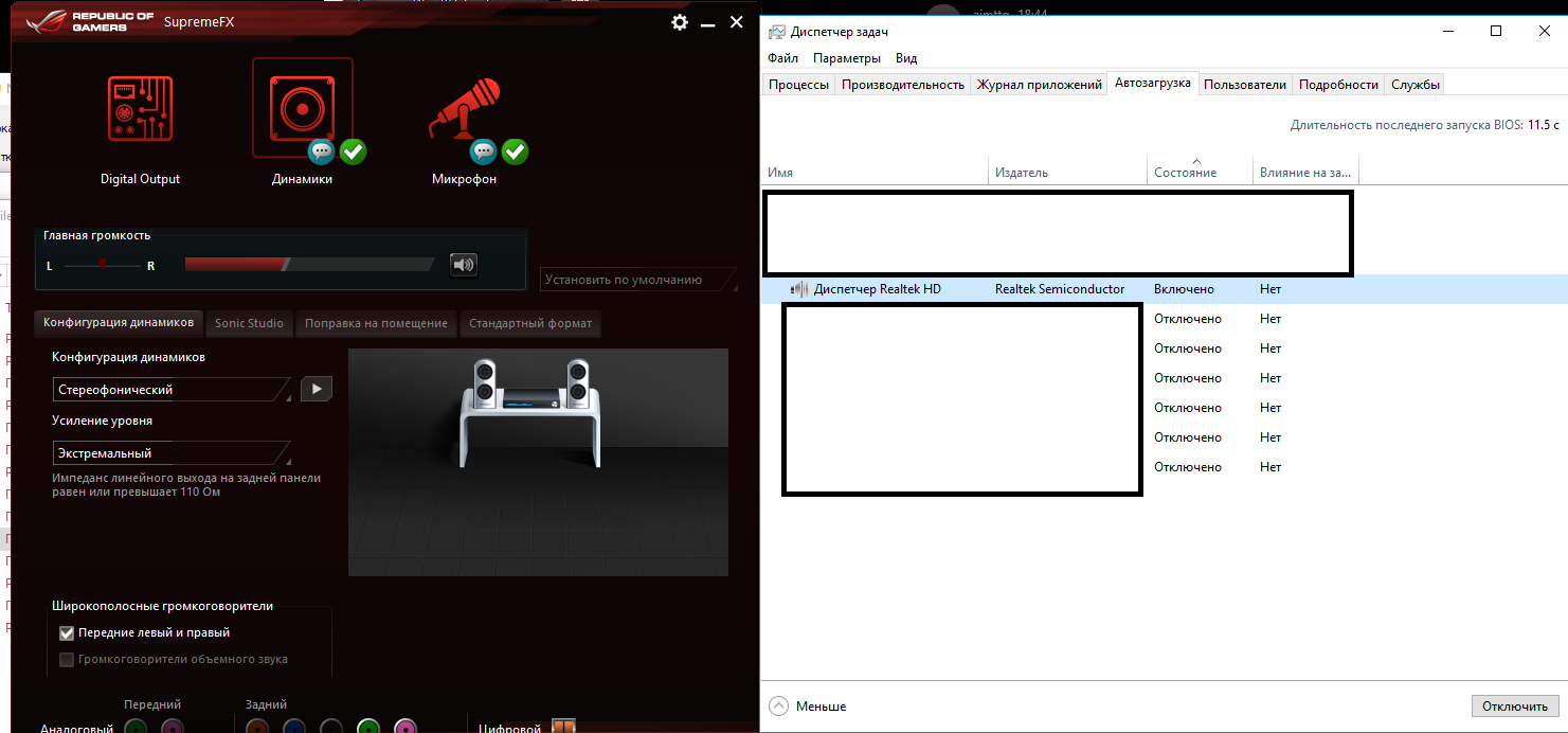 NikeFreak У меня нету ничего того что правее "конфигурации динамиков". Но у меня подключение по спдиф. Хотя думаю это ни на что влиять не должно. Что весьма странно - матери то одинаковые. Вы ставили последние драйвера с сайта асус? Завтра прийду с работы по новой установлю и выложу скрины.