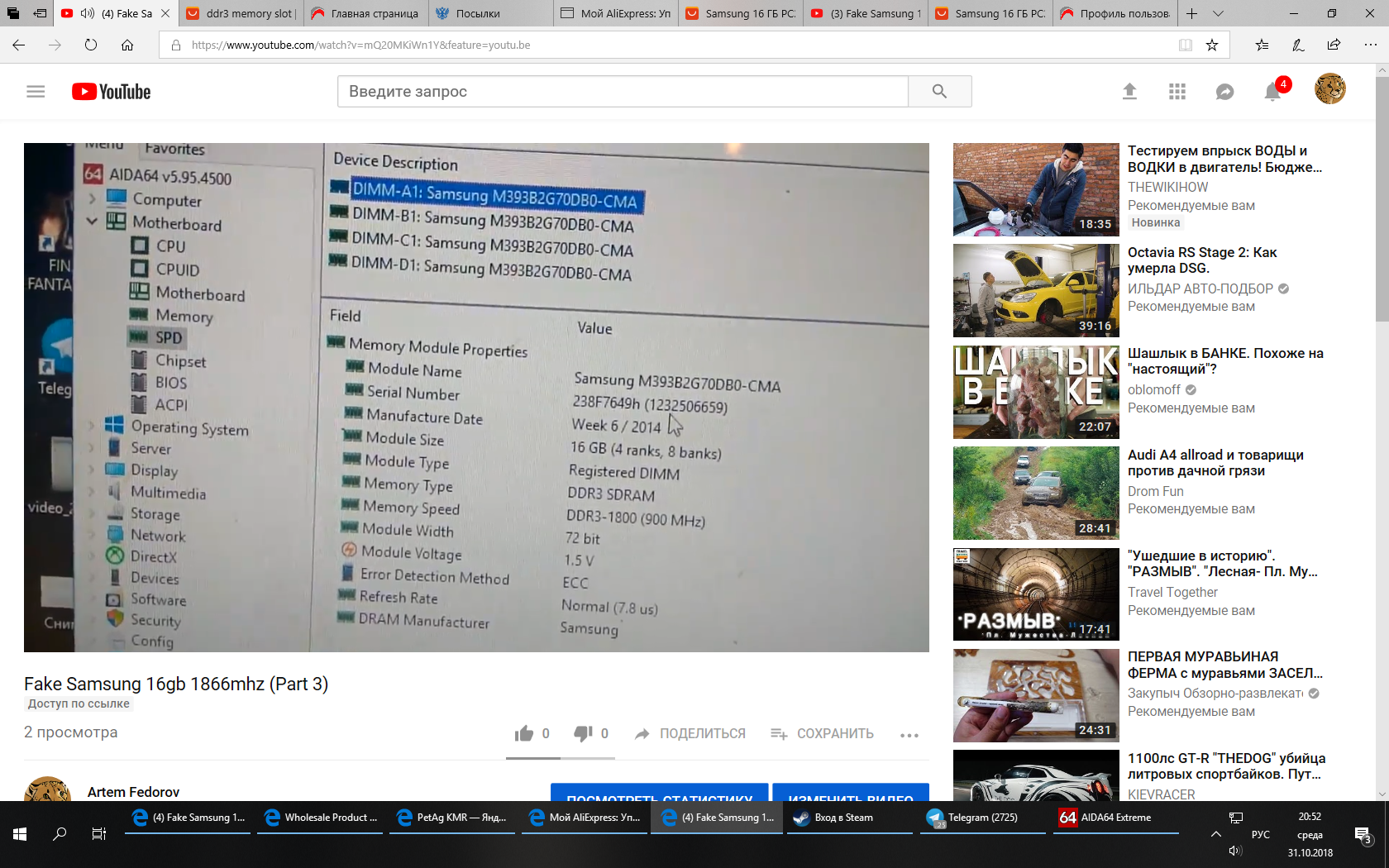 взял еще две планки по 16gb Samsung M393B2G70BH0-YK0 ,тоже завелись на 1866 в куппе с kingson.осталось взять четвертую. спрашивается,на уй этот алибаба с прошитыми планками??? брать или на ебее ,или в авито