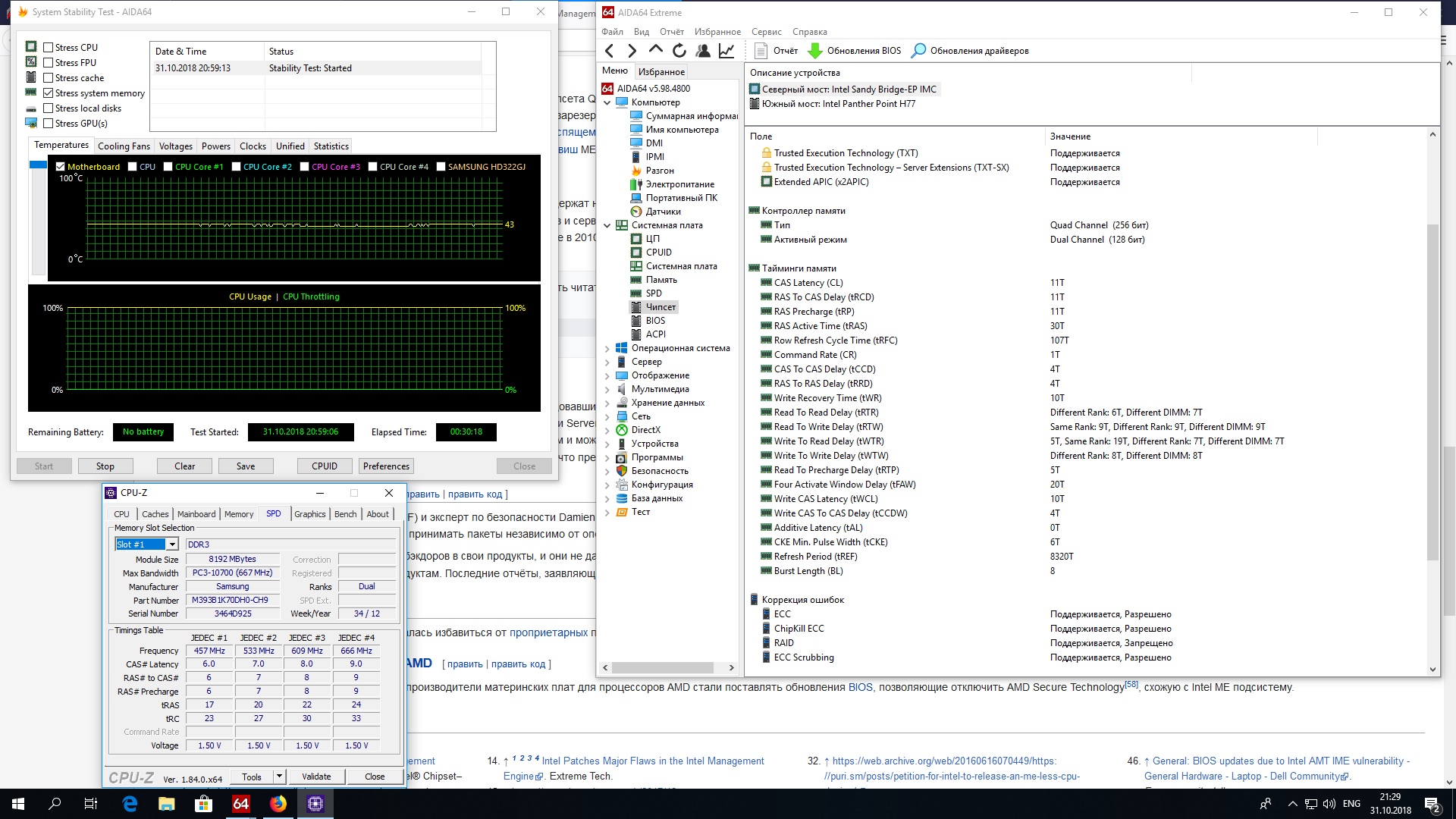 Провел 30 минутный стресс-тест серверной памяти samsung в аиде. Разогнал с родных 1333 до 2133 на huanan 2.49 с модбиосом скрин прилагаю.